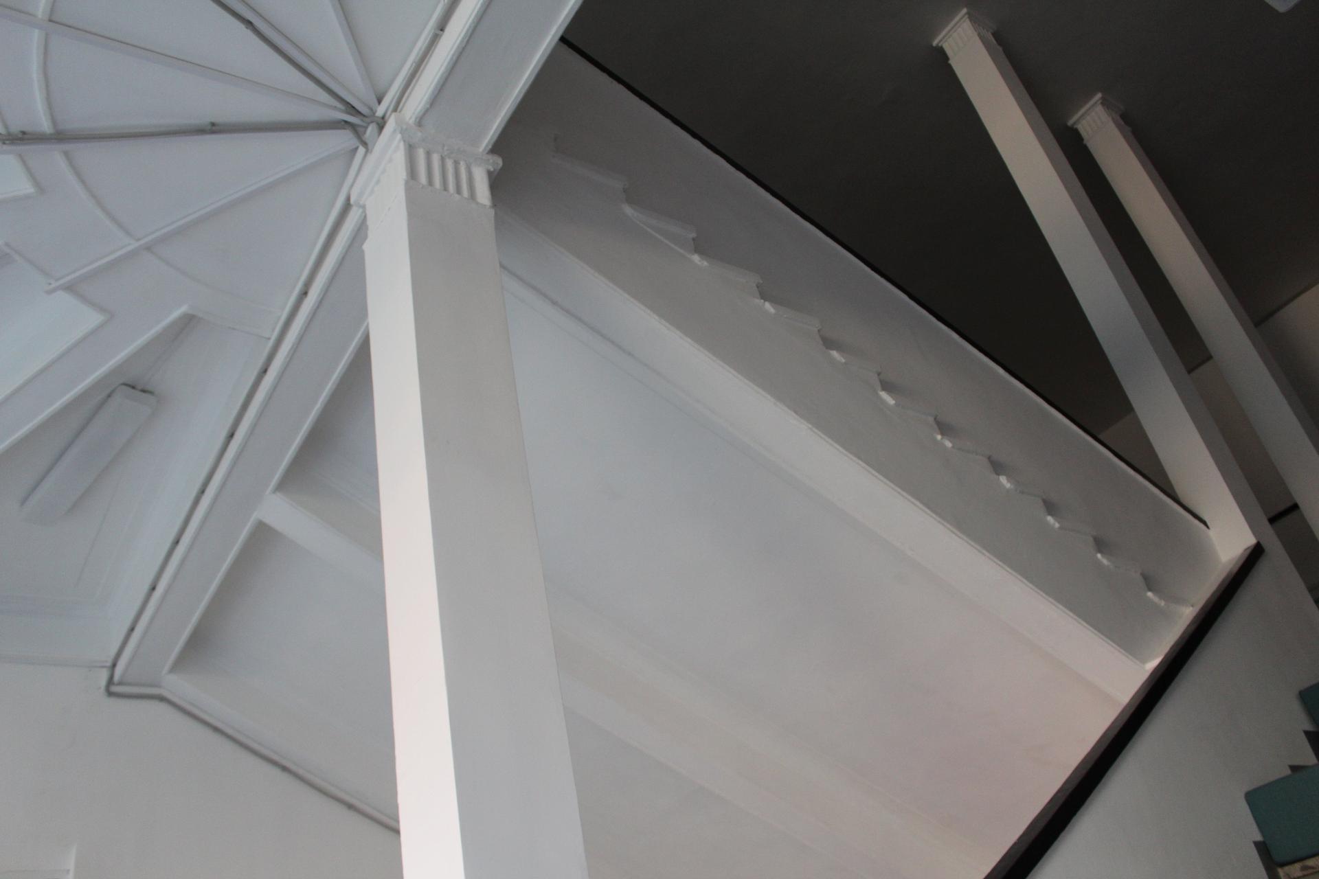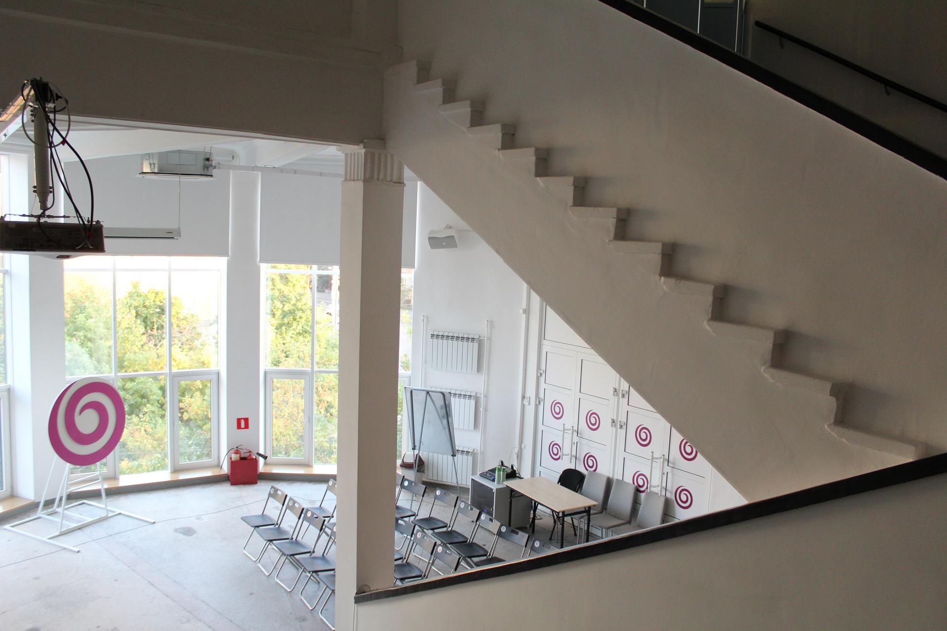 По сторонам обеих двухмаршевых лестниц основного корпуса располагались обеденные залы с центральным вестибюлем. В оформлении лестничных пролетов использовались тонкие высокие опоры со стилизованными капителями, перекрытия декорированы лучеобразными открытыми балками.