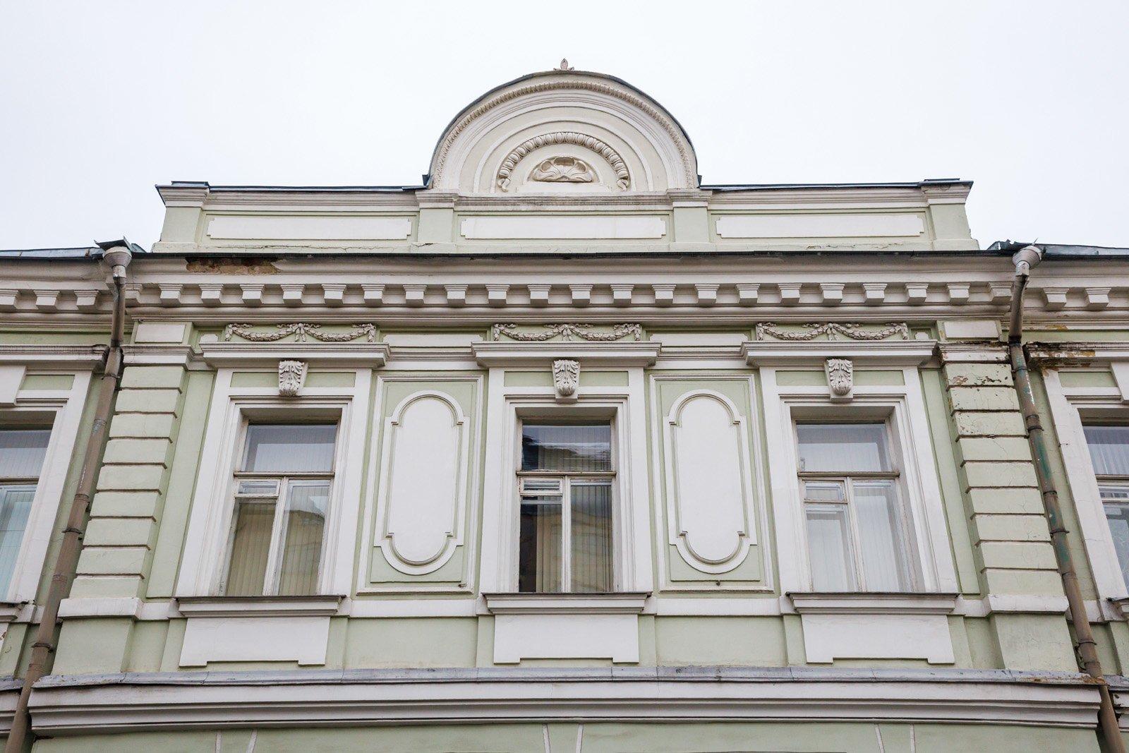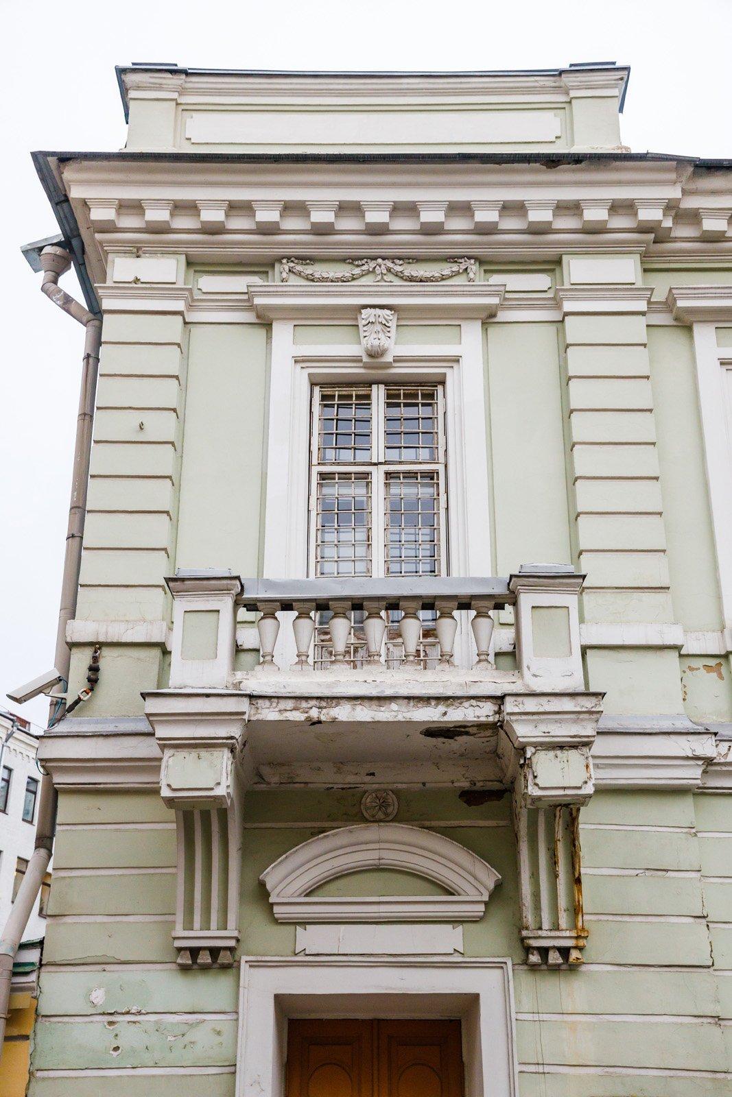 Дворовый и боковые фасады – более скромные. Они имеют крупные арочные окна лестничной клетки и холла. Остальные окна – прямоугольные и оформлены подоконными профилями. Окна первого этажа частично были заложены, когда флигель приспосабливали под фондохранилище.