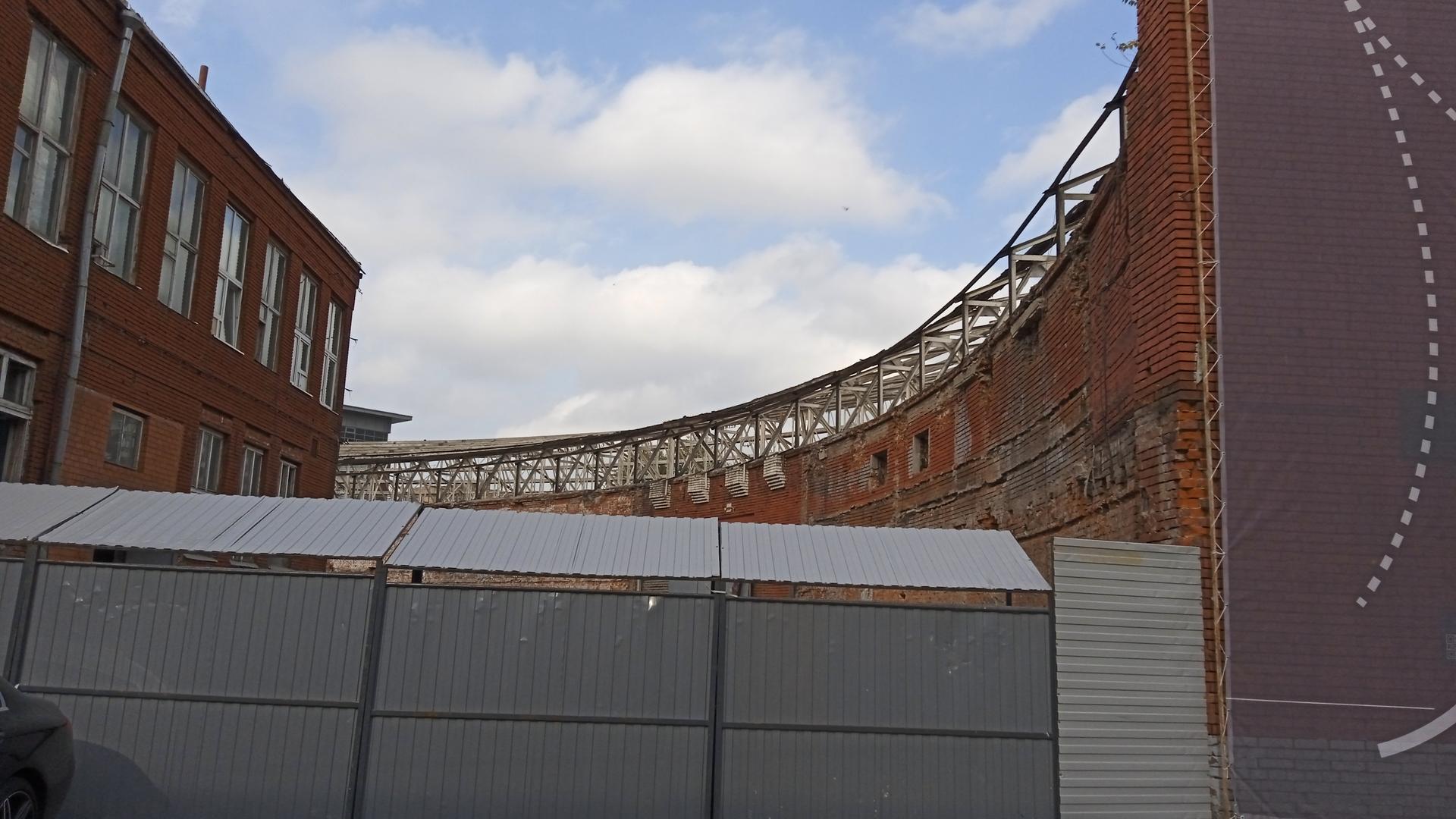 Самое необычное пространство оказывается внутри полукруглой части, которая перекрыта металлическими конструкциями, выполненными по проекту знаменитого инженера Владимира Шухова. Стальные фермы опираются только на внешние стены, оставляя пространство гаража полностью свободным.