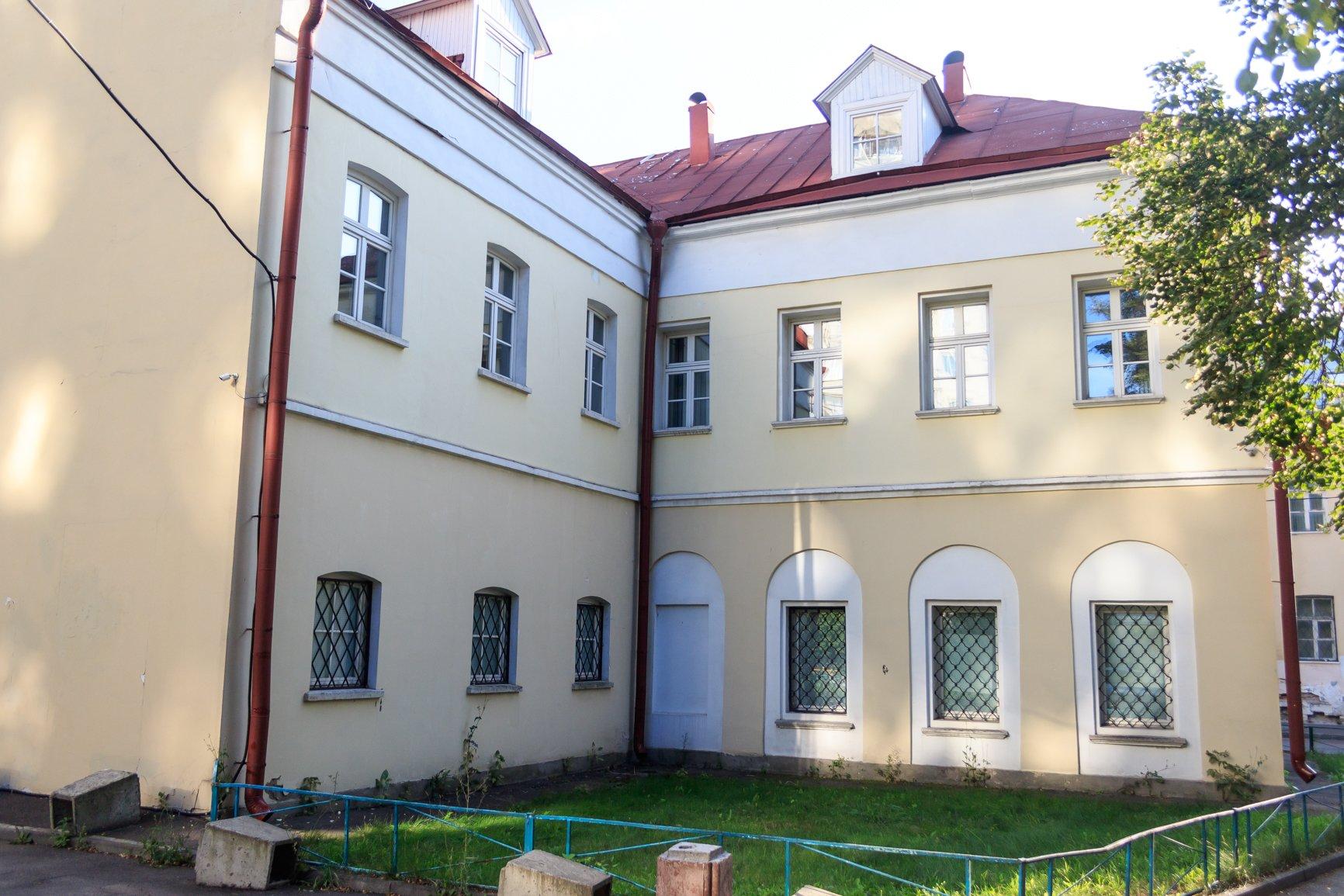 Флигель расширен разновременными пристройками, но главный его фасад с белокаменными профилями и арочными нишами вокруг окон почти не изменился.