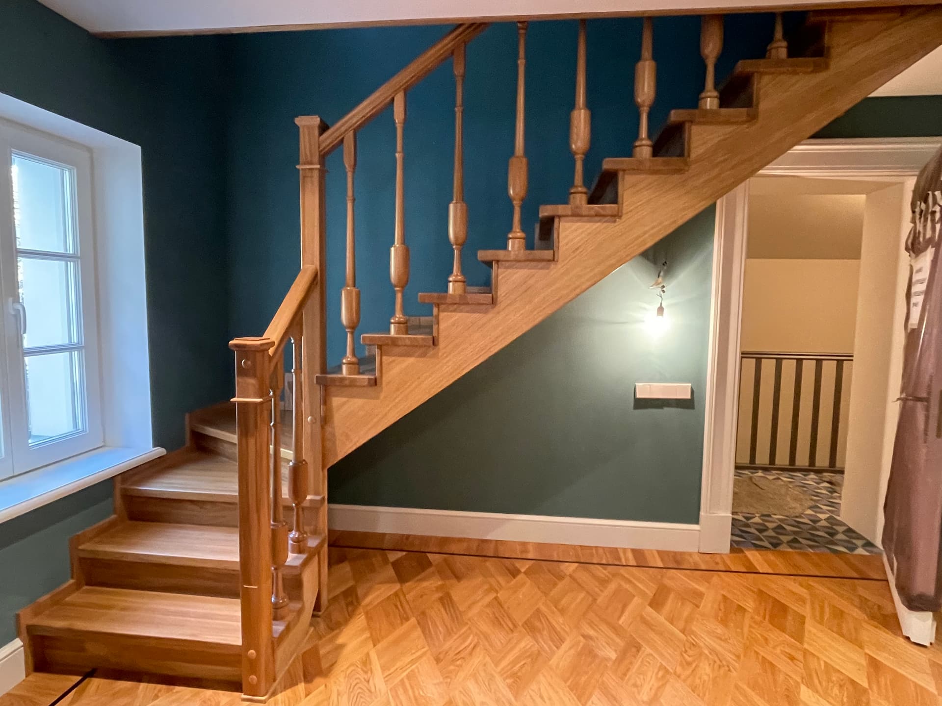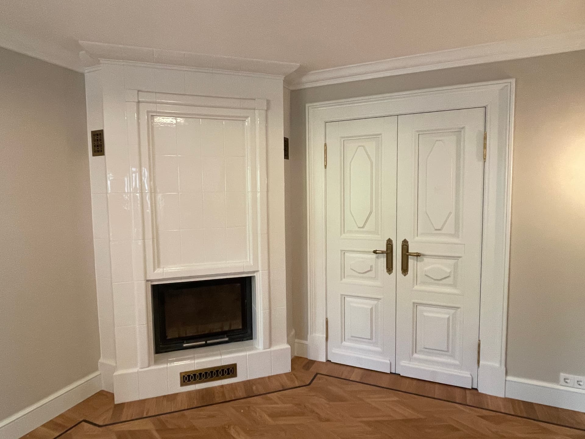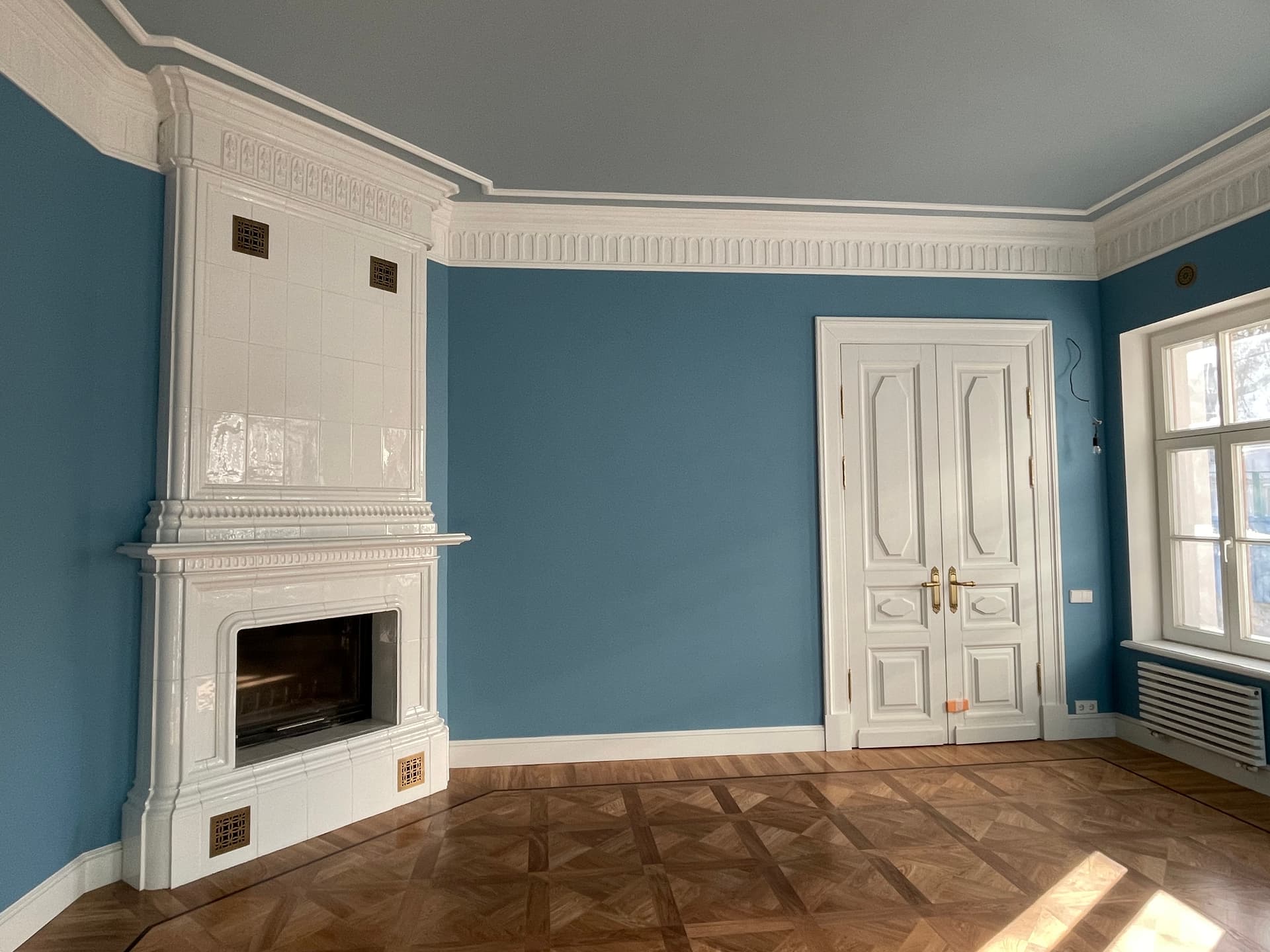 Внутренняя планировка дома также подверглась изменениям, но с учётом сохранения исторической ценности интерьеров. На первом этаже была выполнена перепланировка жилых комнат с выходом во двор. Второй этаж также был адаптирован под современные жилые помещения с санузлами. При этом реставраторы уделили особое внимание сохранению уникальных элементов интерьера. В парадных комнатах были сохранены старинные кафельные печи, которые не только выполняют декоративную функцию, но и служат напоминанием о богатой истории дома. Окна особняка оформили деревянными элементами, воссозданными по историческим образцам.