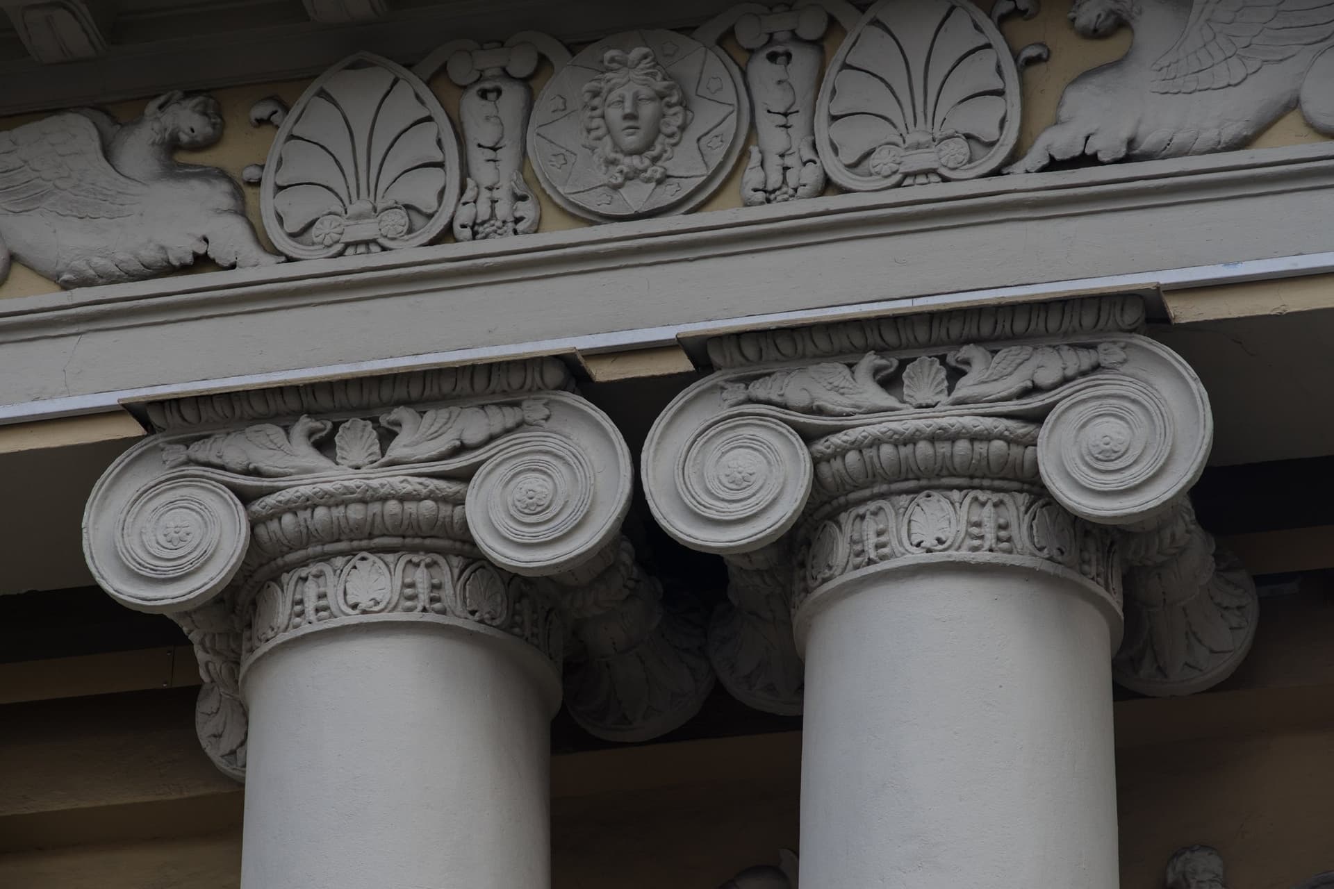 Но уже согласно архивным документам 1843 года, фасад дома сильно отличается от первоначального. С него убрали лепной декор, оконные проемы мезонина и первого этажа переделали в дверные. Кроме того, колонны портика стали тоньше, их увенчали капители с резным декором. К 1868-му главный фасад и вовсе лишился шестиколонного портика, а оконные проемы отделали горизонтальными карнизами, или сандриками. В ноябре 1896 года усадьбу приобрела семья железнодорожных магнатов фон Мекк. Затем дом поменял несколько владельцев, которые его неоднократно перестраивали и достраивали по своему вкусу.