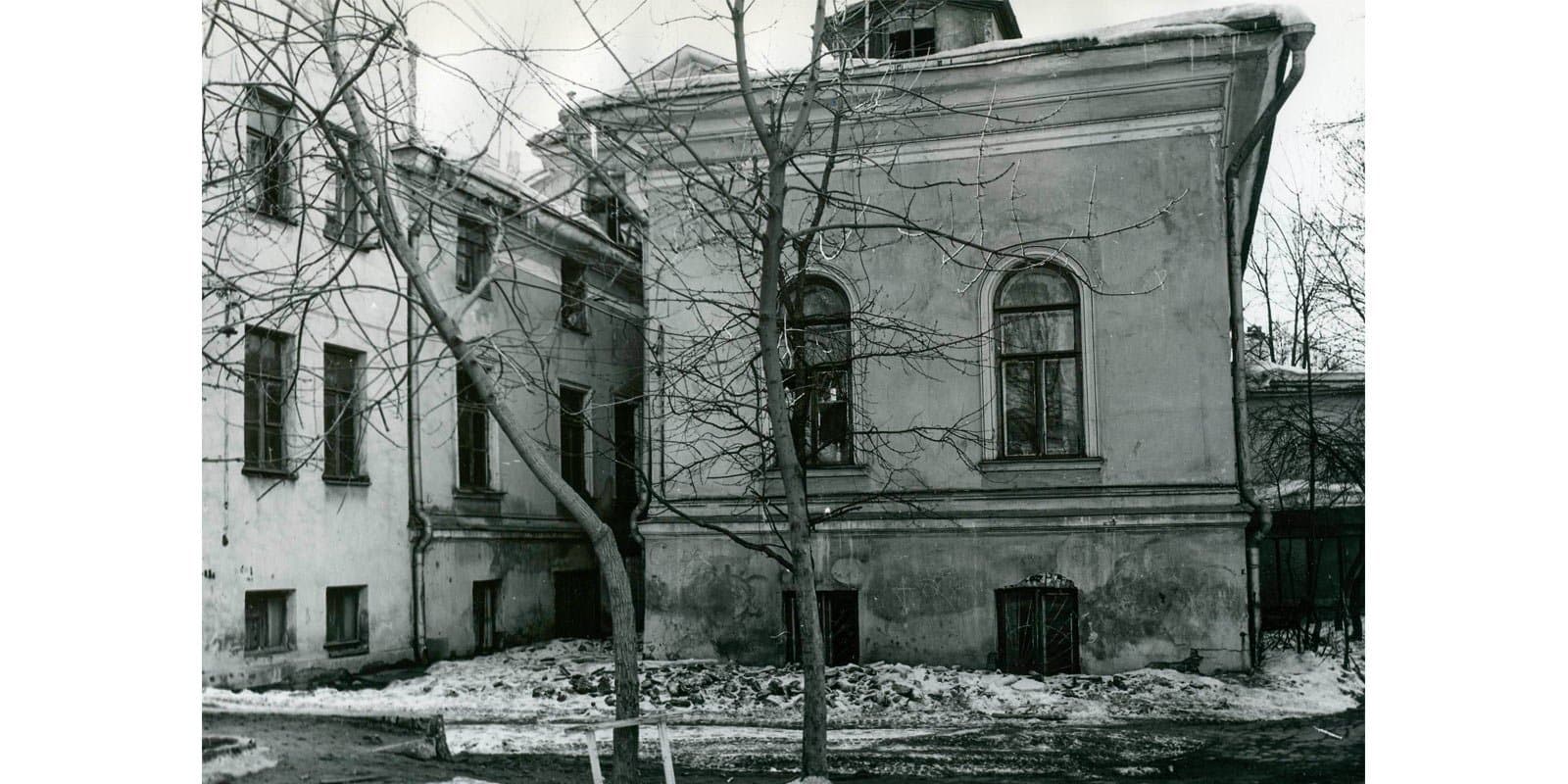 Ко второй половине XX века здание пришло в аварийное состояние. На снимках тех лет видно, что фасад дома сильно обветшал, а на мезонине отсутствуют штукатурка и балкон. Во время реставрации в 1980-х зданию решили вернуть облик образца 1834 года, который воссоздавали по архивным чертежам. В итоге на главном фасаде снова появились портик и лепнина, колонн снова стало шесть, а мезонин оштукатурили и дополнили балконом.