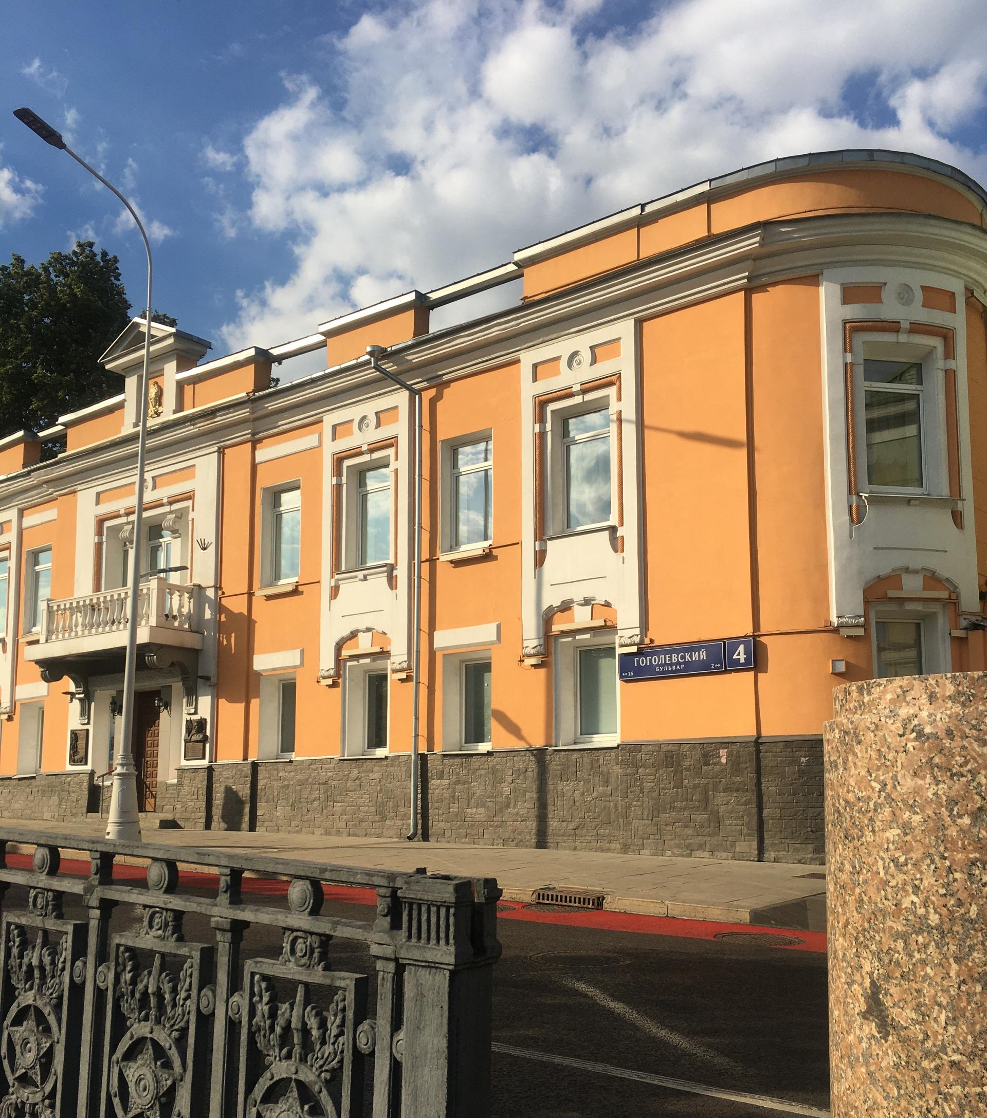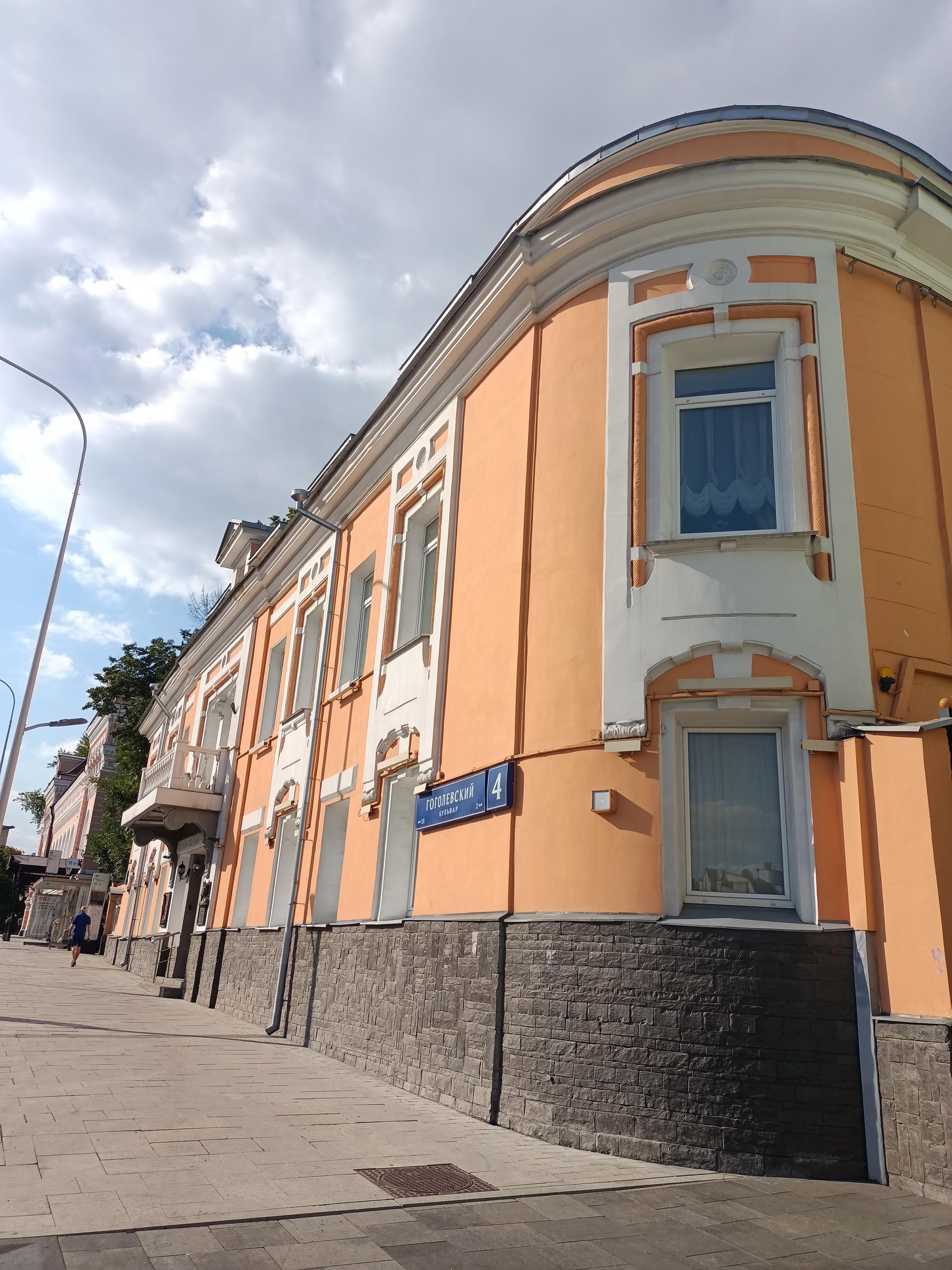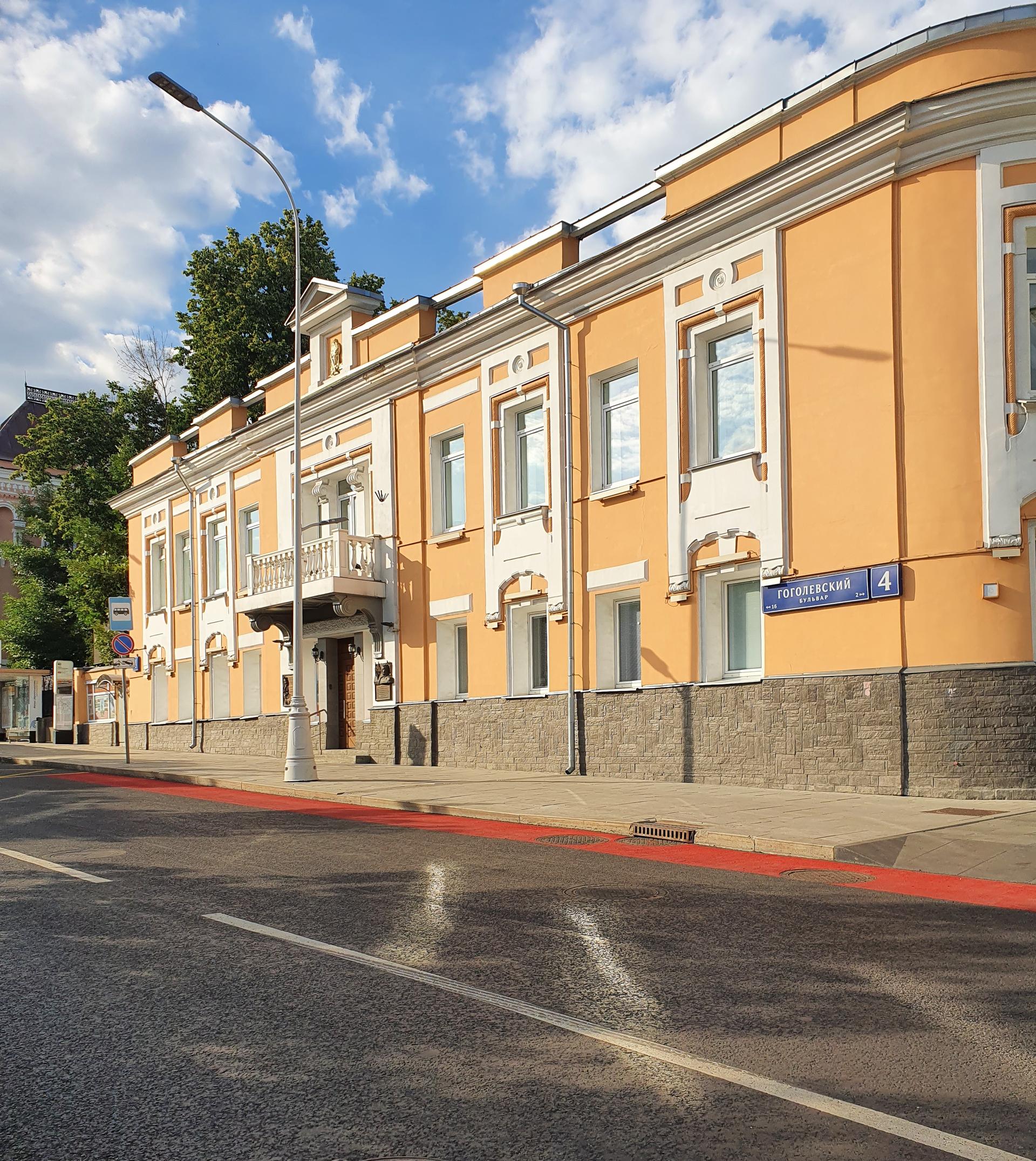 Городская усадьба князя И.М. Оболенского – И.И.Некрасова – А.А. Катуар – де – Бионкур. Была перестроена в 1890 годы архитектором Р.И. Клейном и в 1899 году архитектором Л.Н. Кекушевым. В 1903 году архитектором И.П. Залесским был изменен балкон.