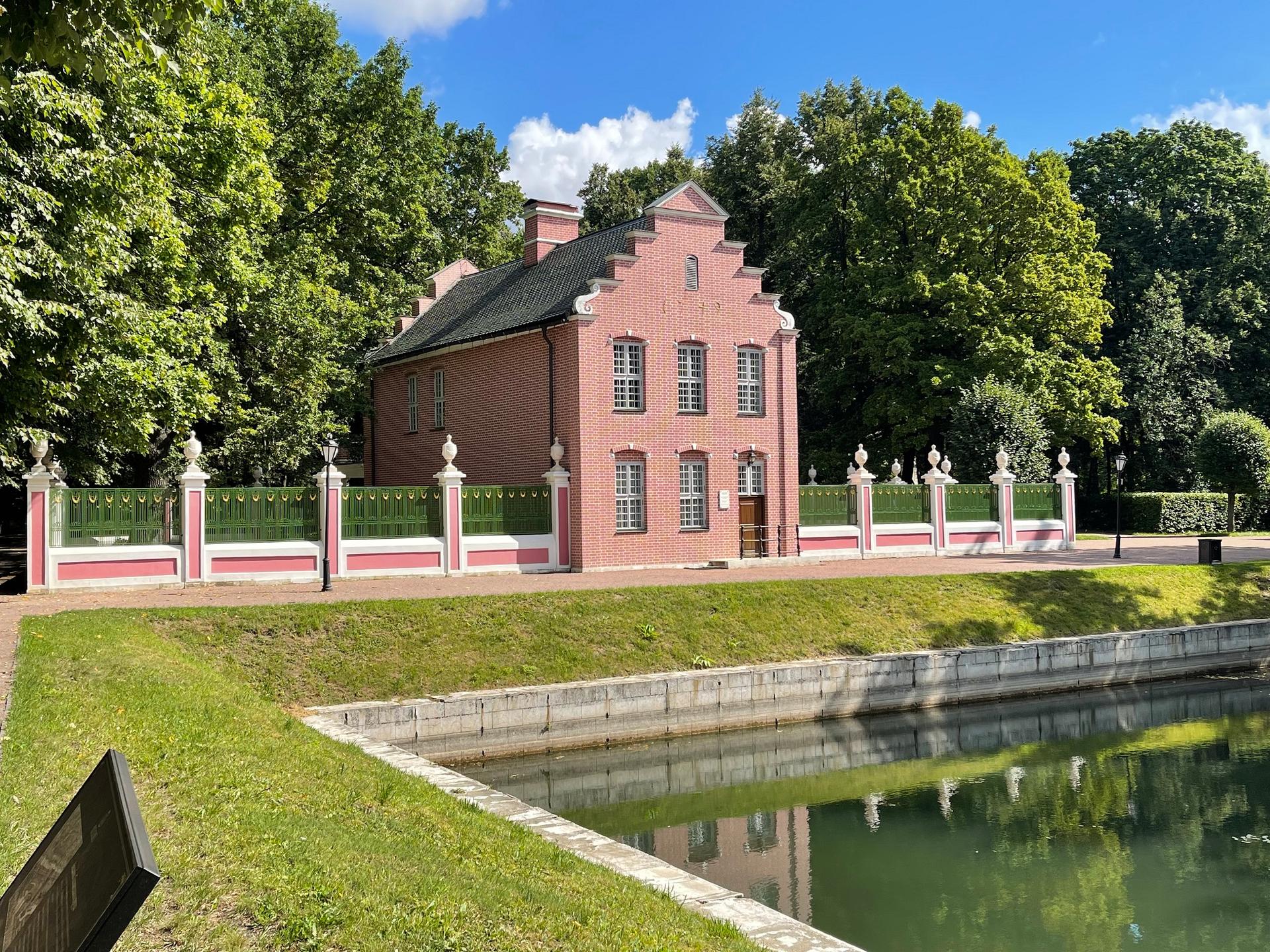 Этот «архитектурный сувенир» первым встречал гостей, въезжавших в Кусково через подъемный мост. В годы расцвета усадьбы он являлся центром малого ансамбля на берегу залива-пруда, некогда изобиловавшего карпами, приплывавшими кормиться на звон колокольчика. И сразу же вовлекал в мир игры, фантазии, в «невозвратный мираж пасторального рая». Не только сам домик с нарядным ступенчатым фронтоном, окнами с частыми, «в тридцать два стекла», переплетами, – точно сошедший с картин «малых голландцев», – но и все его окружение должно было вызывать определенные ассоциации с Голландией: и «городская застройка» вместе с исчезнувшими еще в XIX веке «Пагоденбургом» («Китайским павильоном») и «Столбовой» беседкой, и похожий на непременный голландский канал пруд, и крошечный сад с тюльпанами и гиацинтами, и огород со спаржей и капустой.