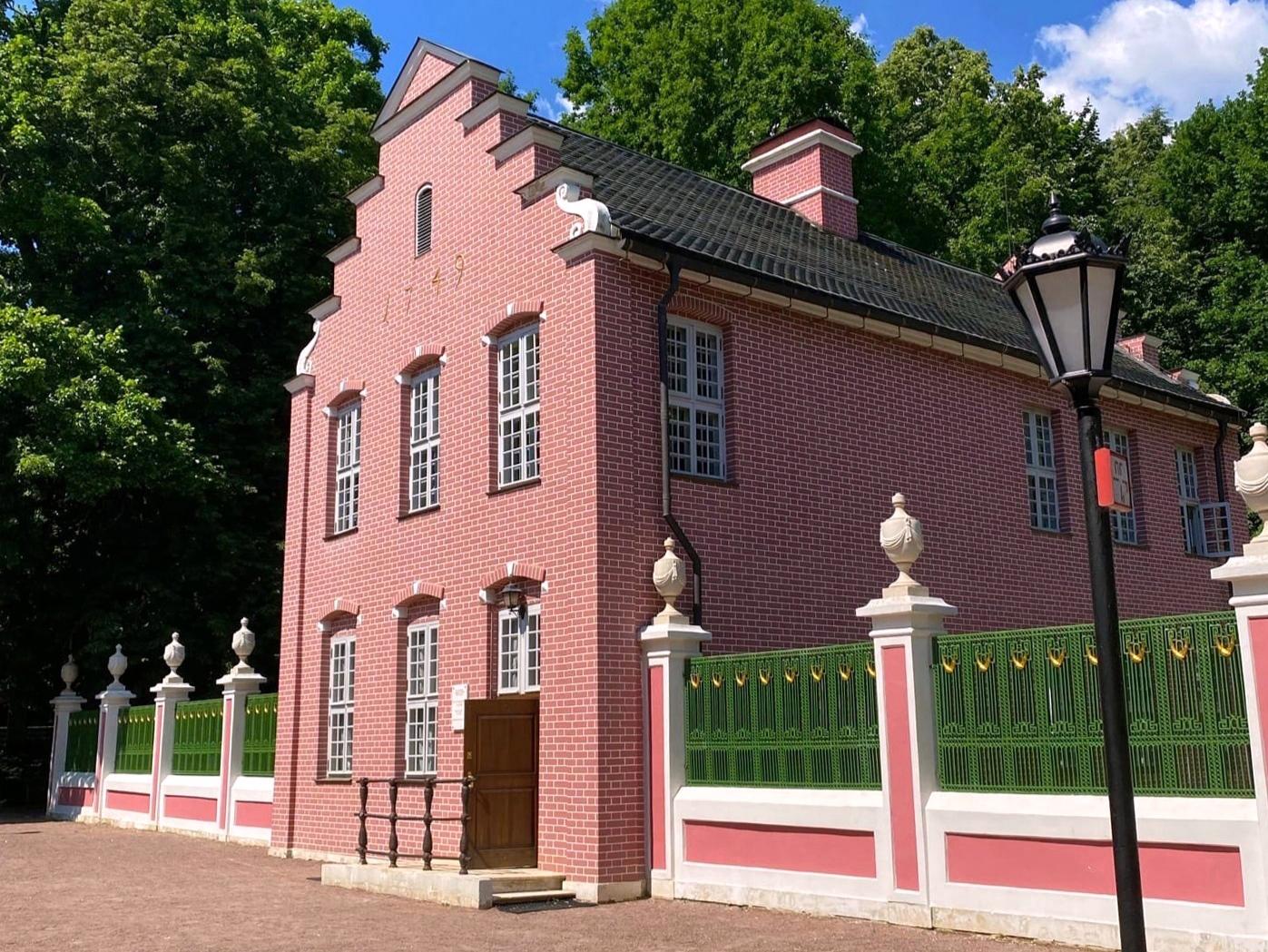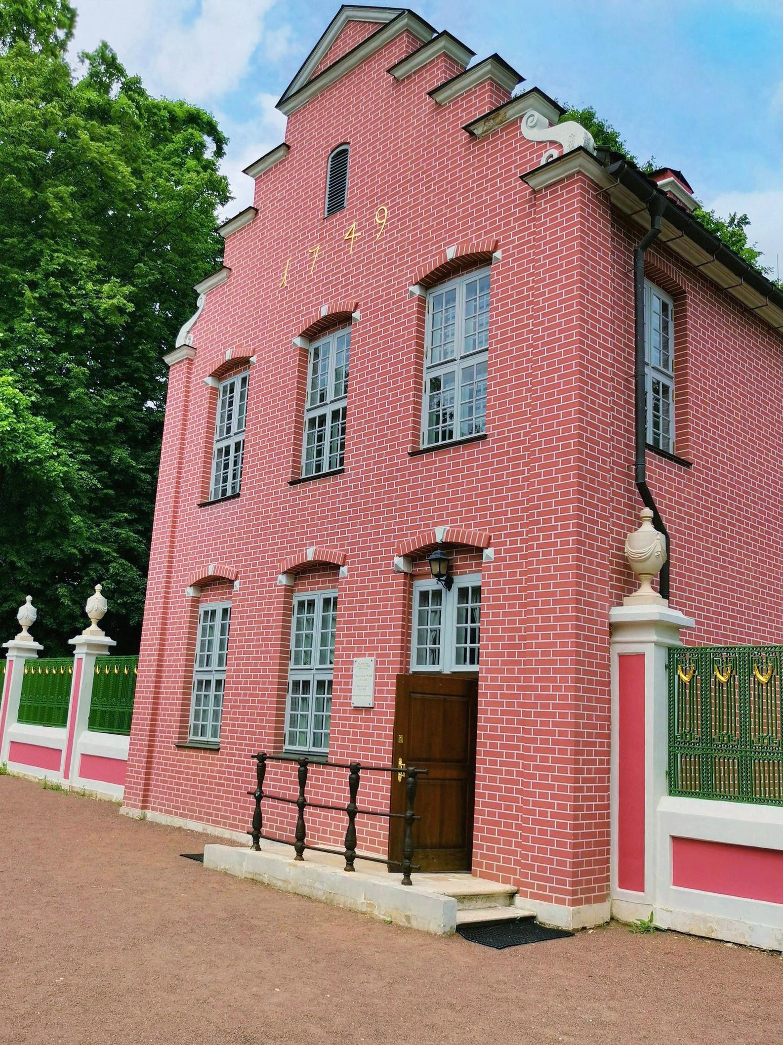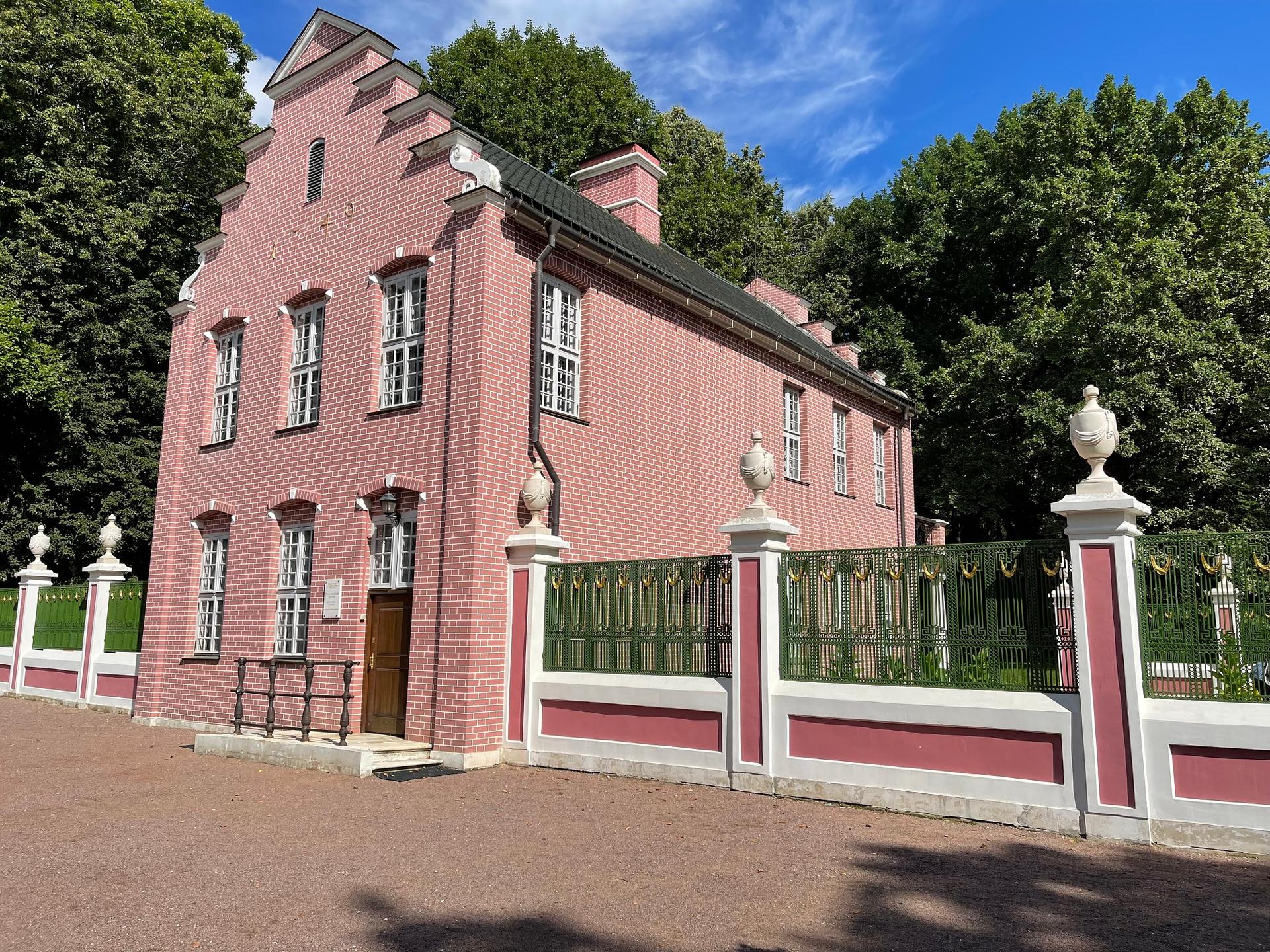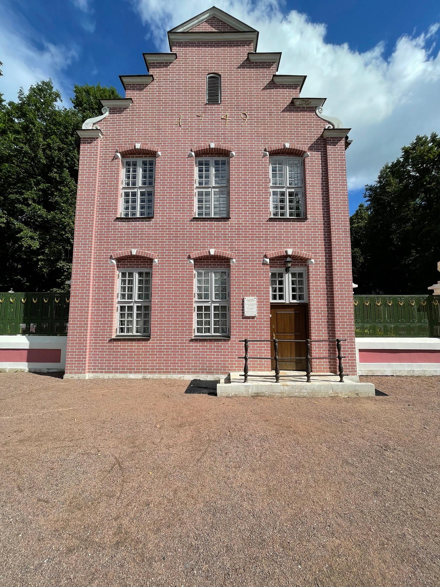 «Быт голландского бюргера» в домике-игрушке продуман до мелочей, но быт опоэтизированный, возвышенный. Игра начинается уже с первого взгляда на фасад, на ровные яркие кирпичики. Это всего лишь роспись «под кирпич» и, что любопытно, по кирпичу. Весело, нарядно – и, опять же, в традициях XVIII века. Так буквально воспринимался указ Петра I штукатурить дома и расписывать их «под кирпич», как в милой его сердцу Голландии.