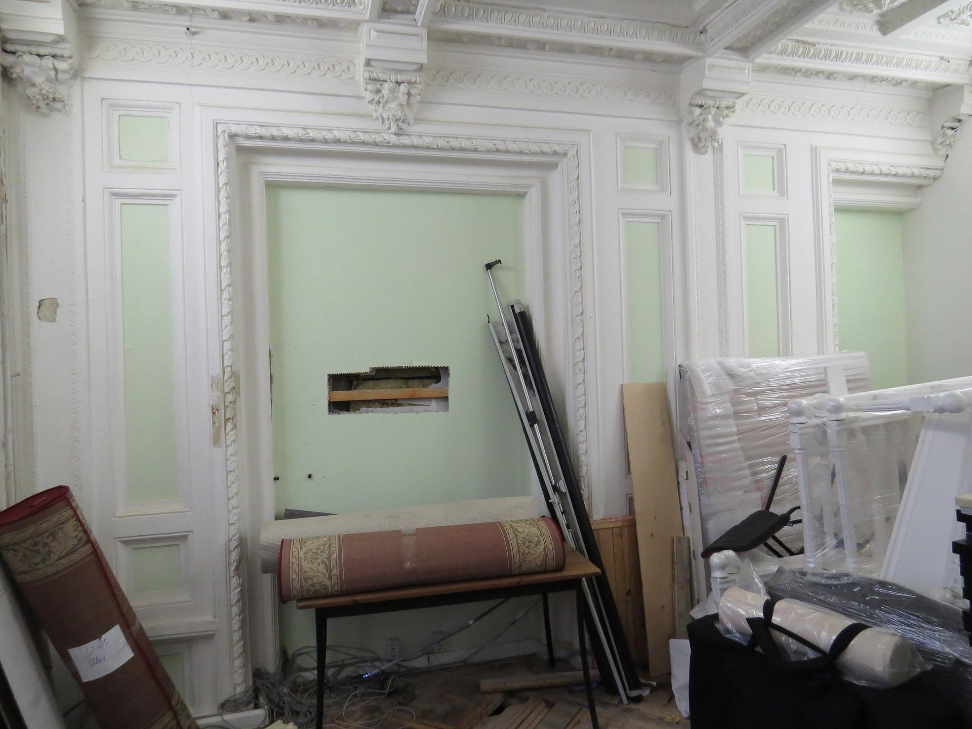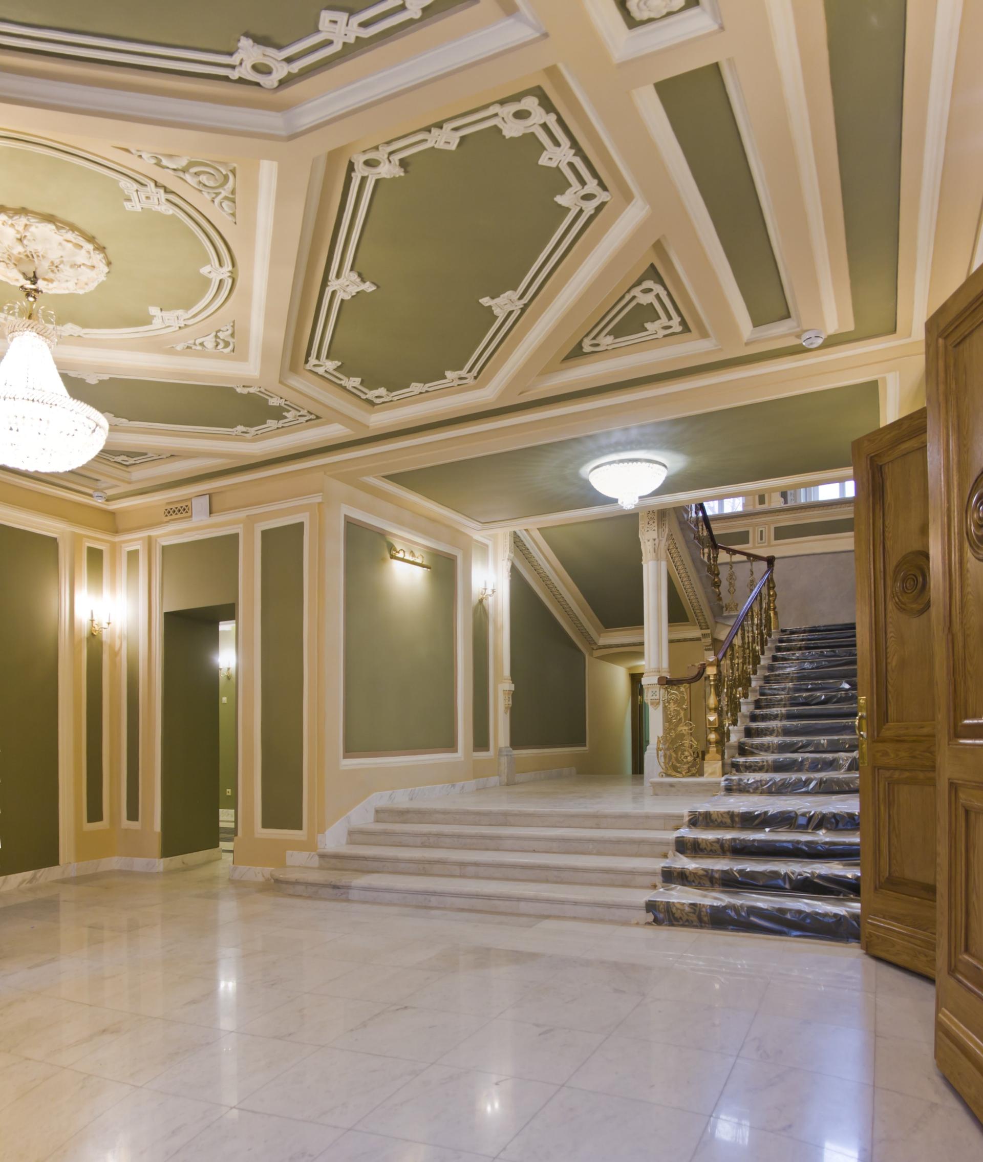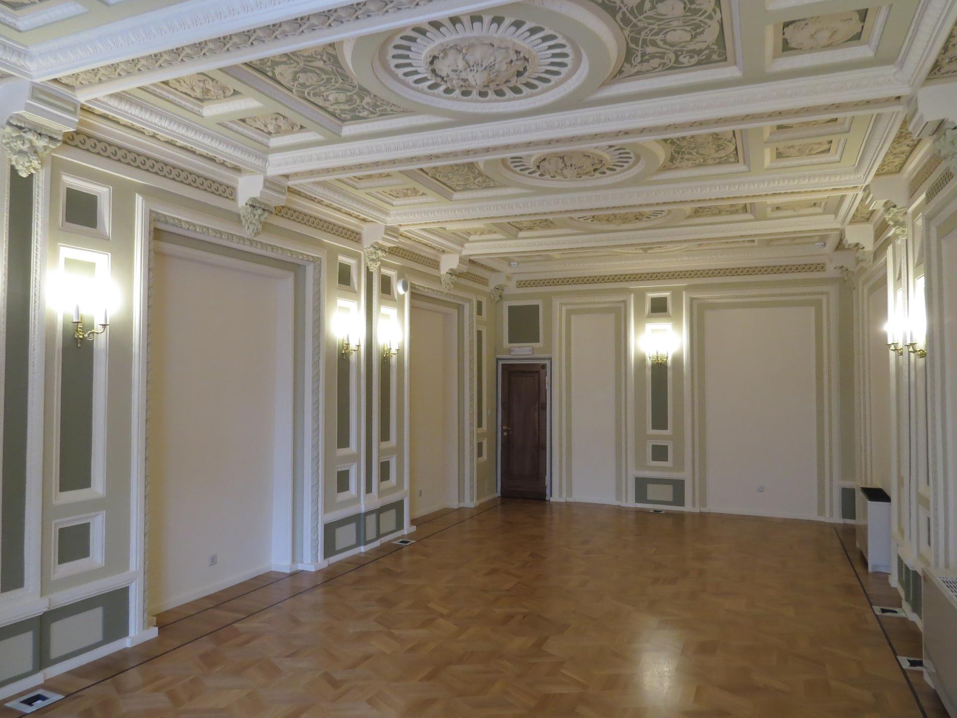 Перед началом реставрационных работ была проведена масштабная научная экспертиза, позволившая выявить состояние конструкций здания и определить наиболее уязвимые элементы, нуждающиеся в восстановлении. В ходе работ были раскрыты и восстановлены исторические ниши и дверные проёмы, заложенные во время поздних перестроек. Также восстановлены оригинальные штукатурные покрытия стен и потолков, а гипсовый лепной декор бережно отреставрирован с фрагментарным воссозданием утраченных элементов.