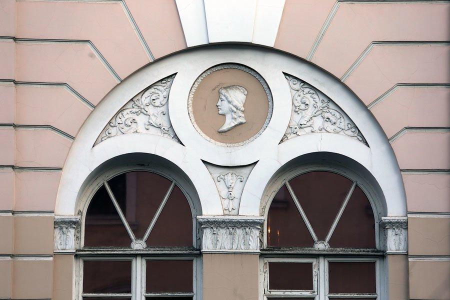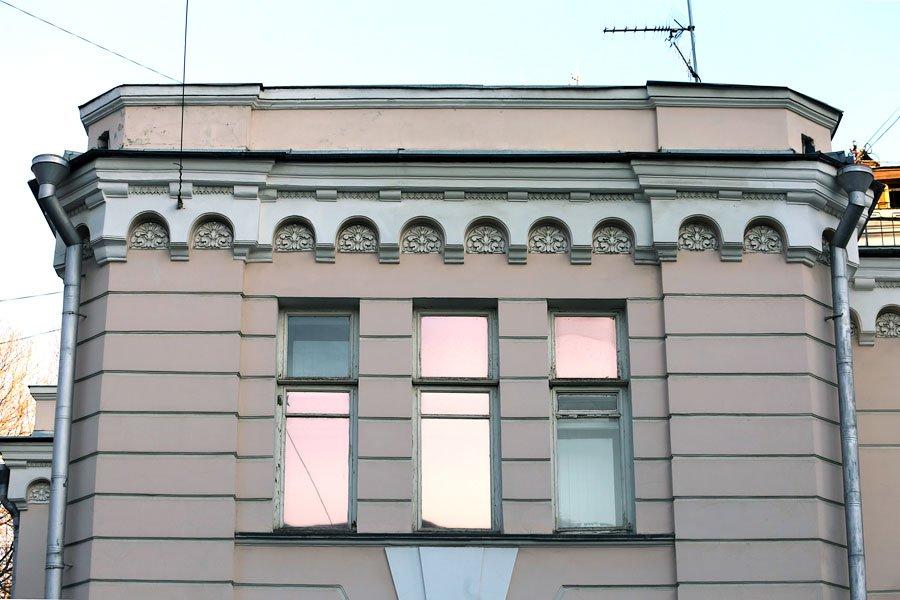 Здание решено в сочетании ренессансных форм и элементов готики. Фасады дома украшают лепные детали, в их числе наиболее крупные – львиные маски и женские головки в медальонах.