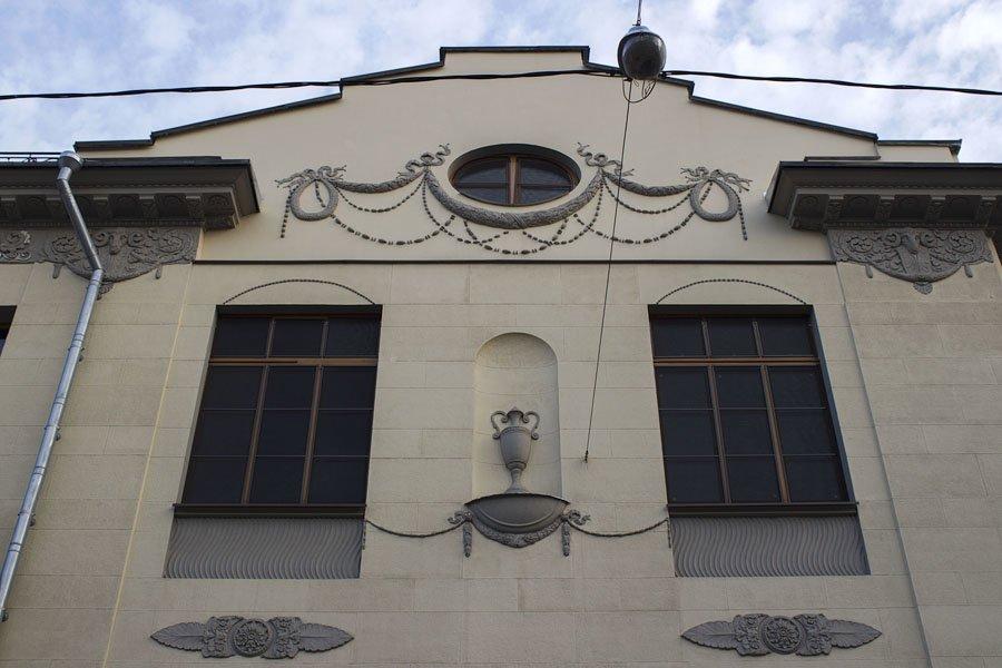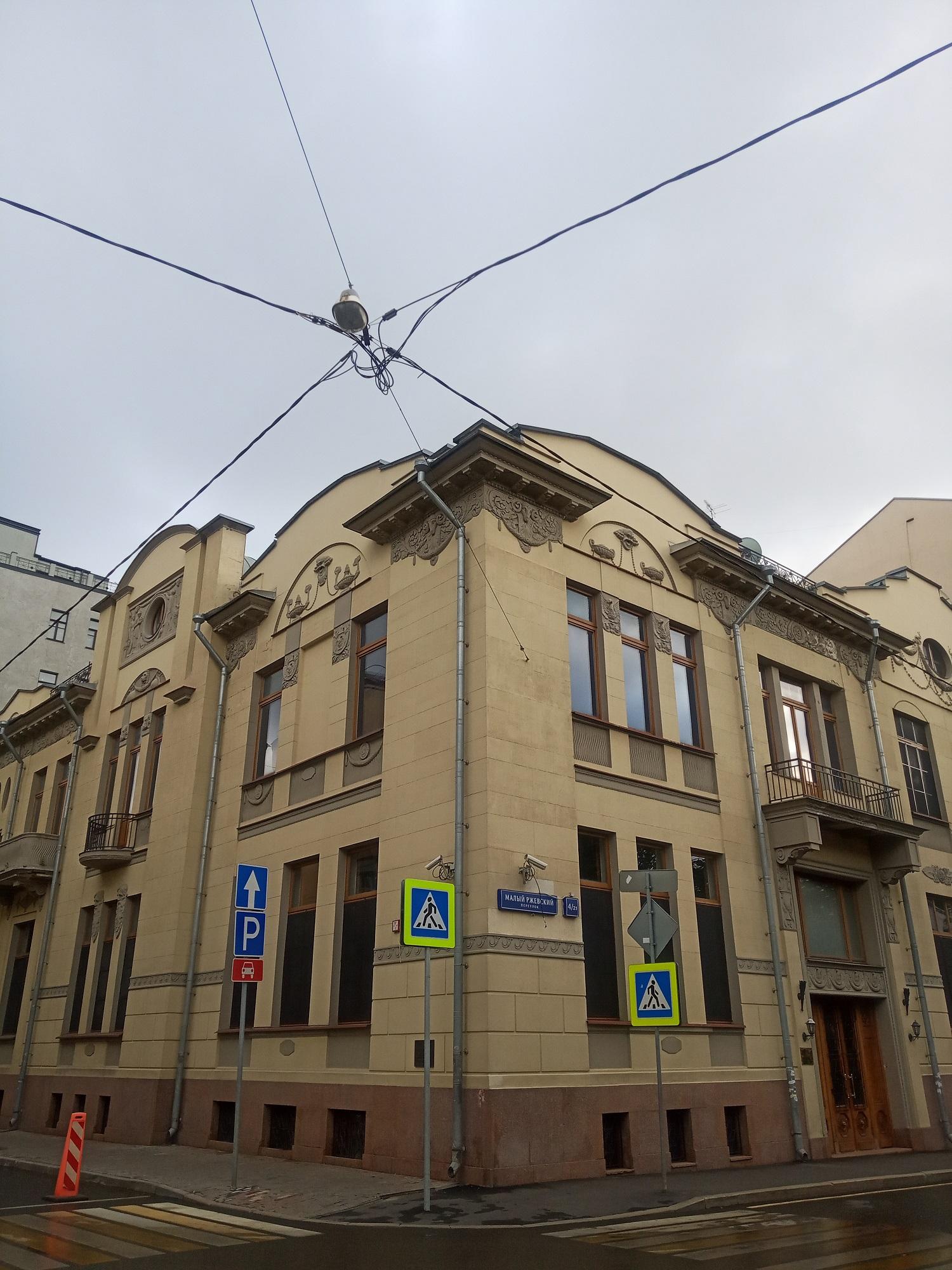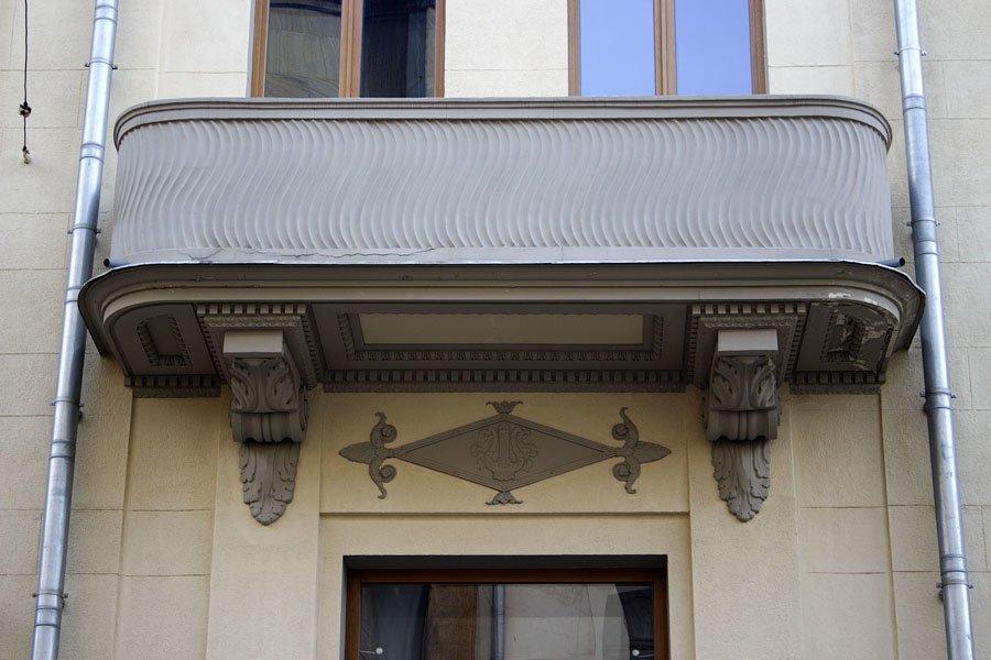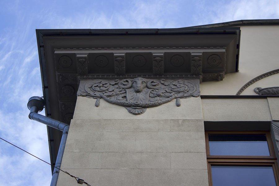 Из модерна на стены особняка перешел богатый животный символический мир. В частности, присутствуют грифоны, которые символизируют власть над небом и землей, силу, бдительность и гордыню. Головы баранов – символы процветания, неясыти – символы милосердия, лебеди, орлы... Главное окно фасада с Хлебного переулка фланкируют полуфигуры бородачей, сошедшие как будто с картин Билибина или Васнецова, их бороды превращаются в листья аканта.