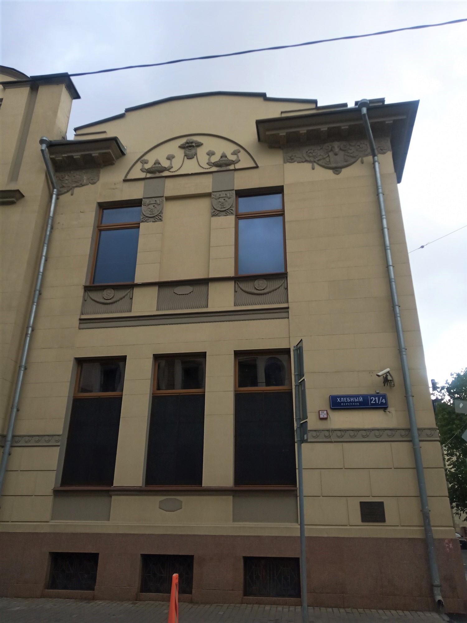 А с Хлебного - вход в квартиру на втором этаже, которая сдавалась в наем. Снимал ее потомственный почетный гражданин Александр Владимирович Бер, член Московского Автомобильного Общества, сотрудник Голофтеевской школы Общества Поощрения Трудолюбия.