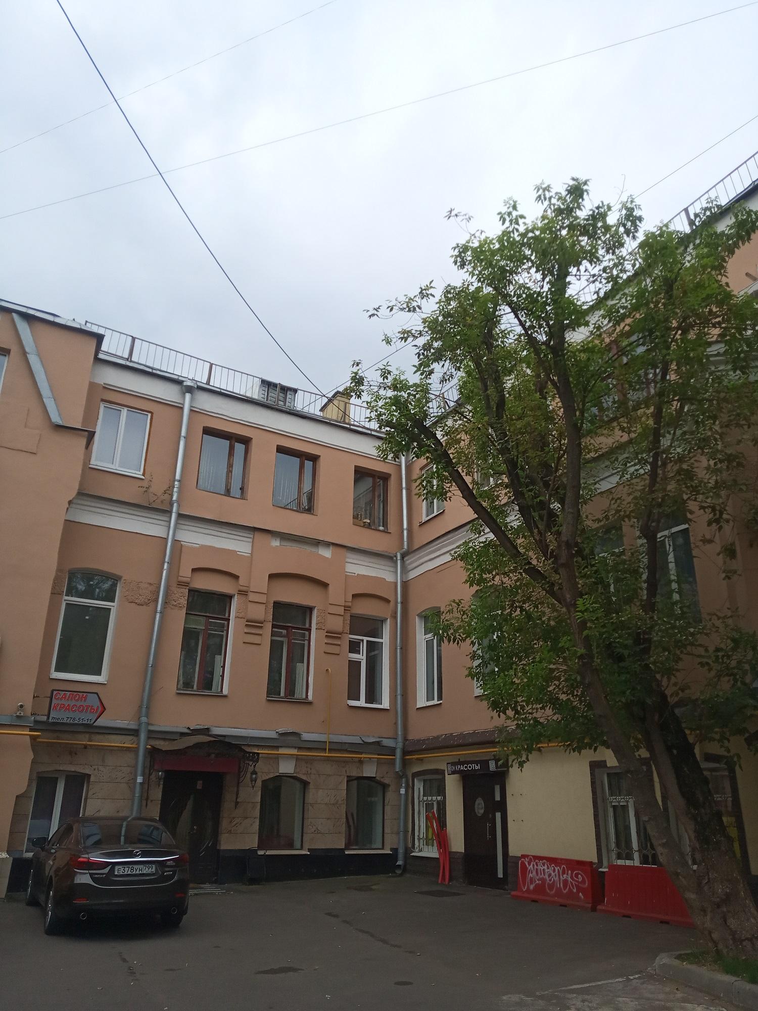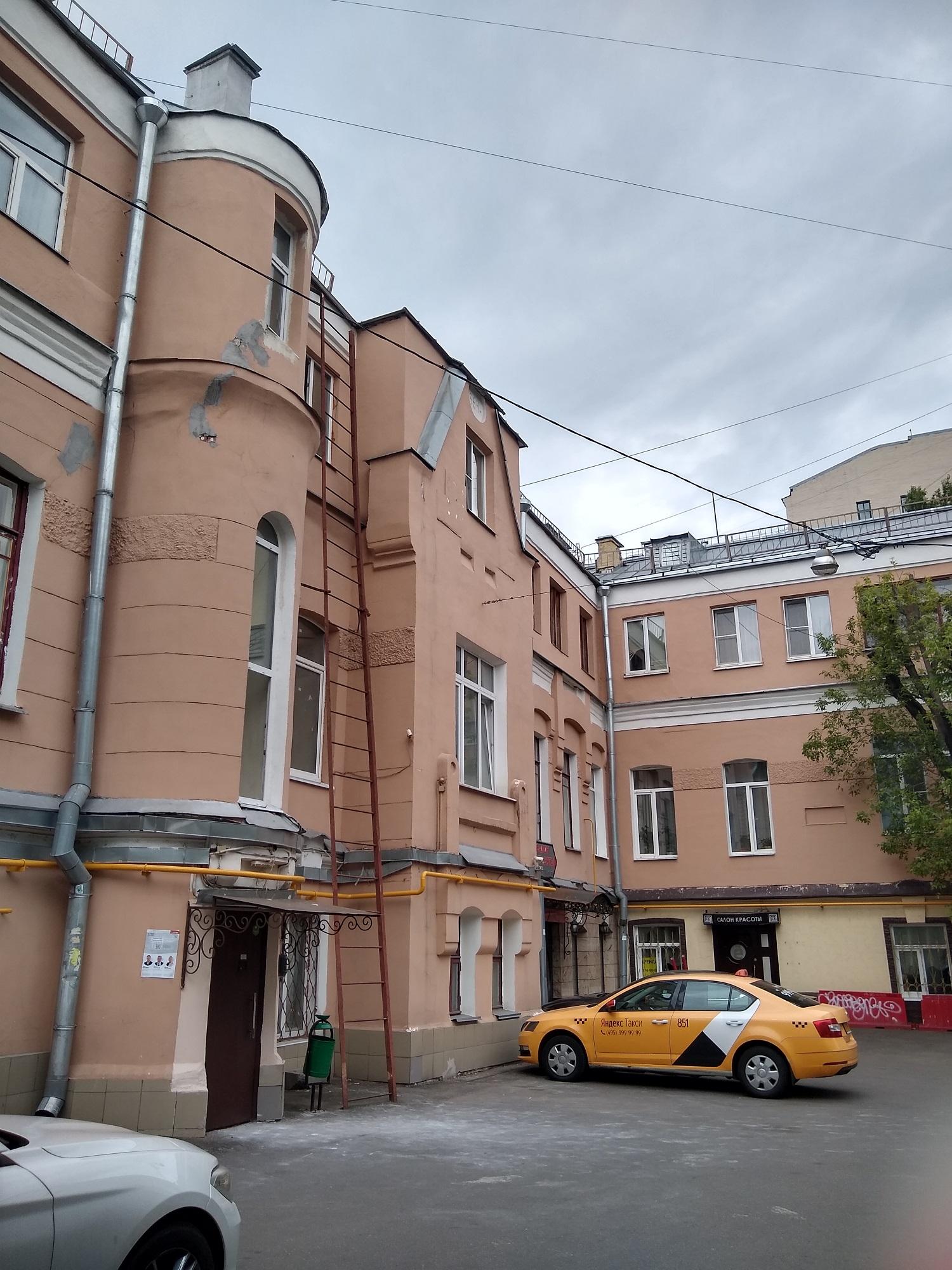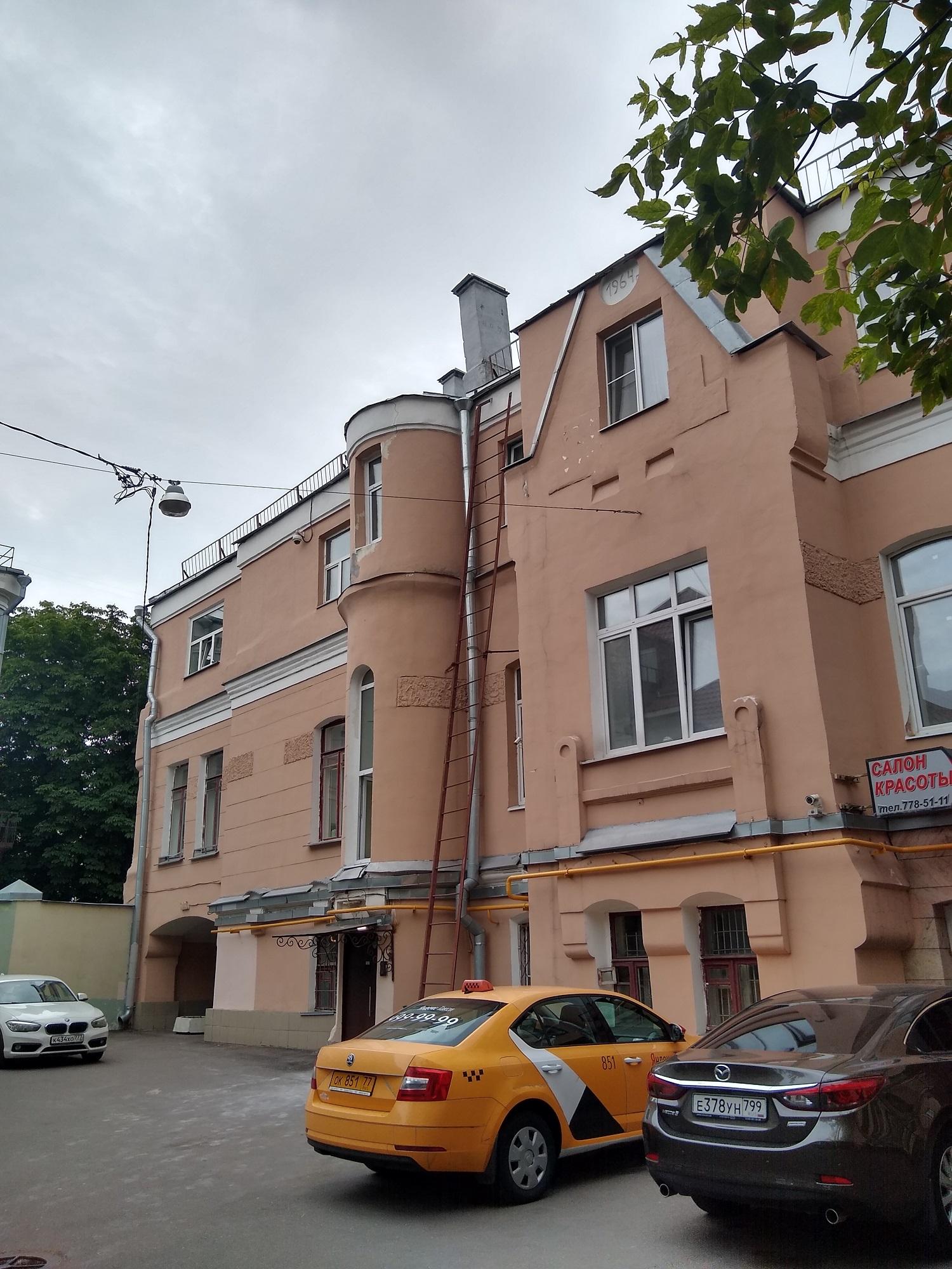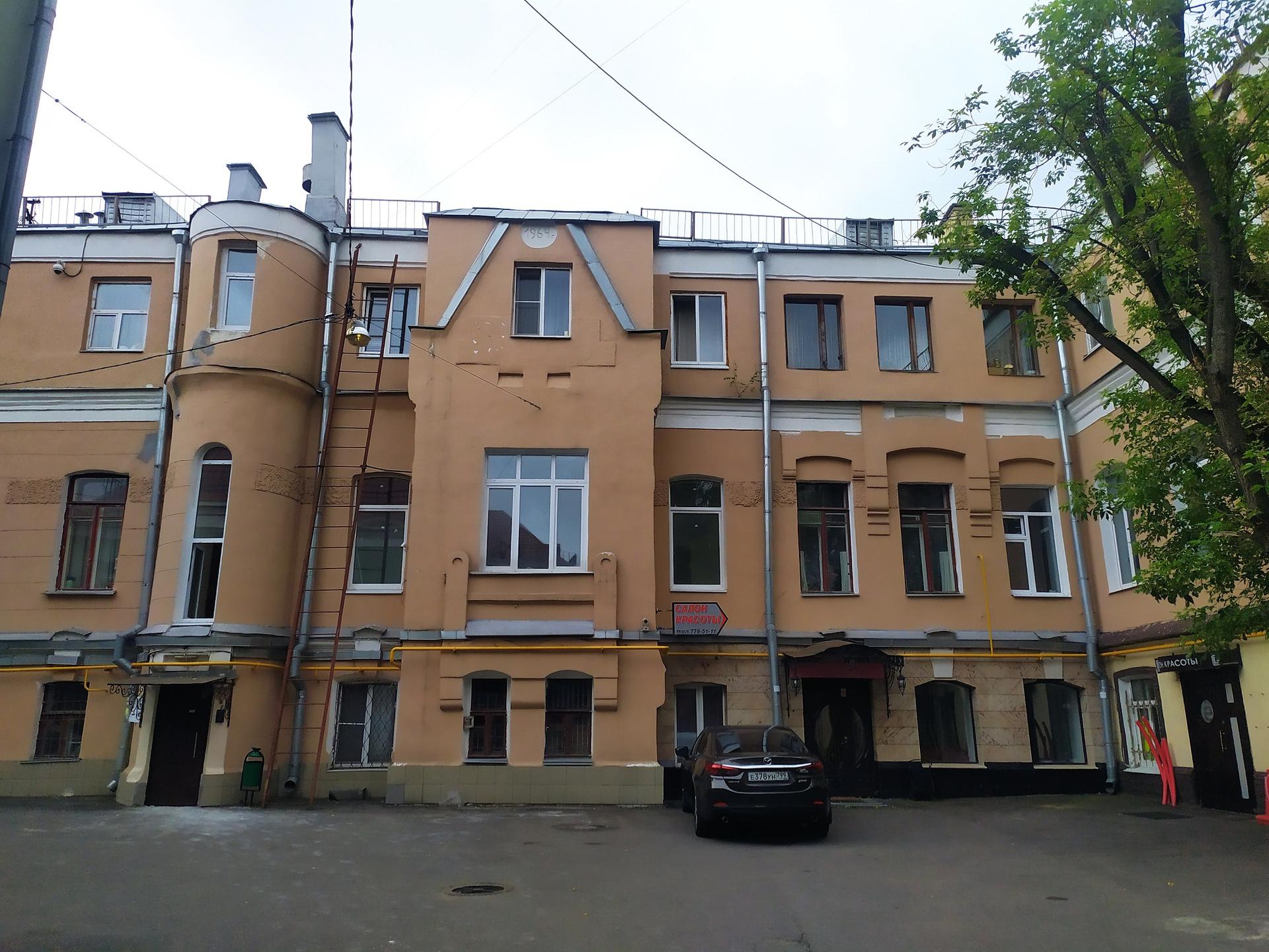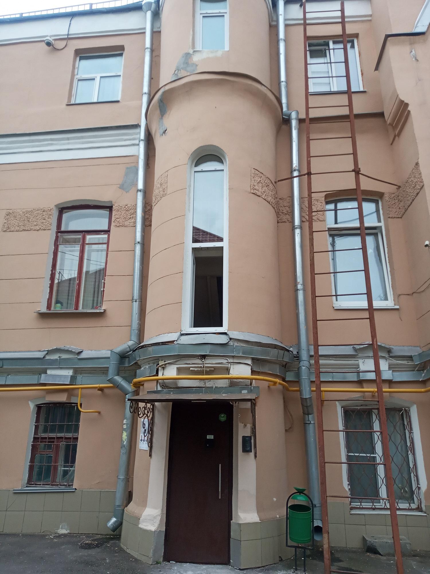 Дом до сих пор жилой. На лестничной клетке частично сохранилась плитка в стиле модерн.