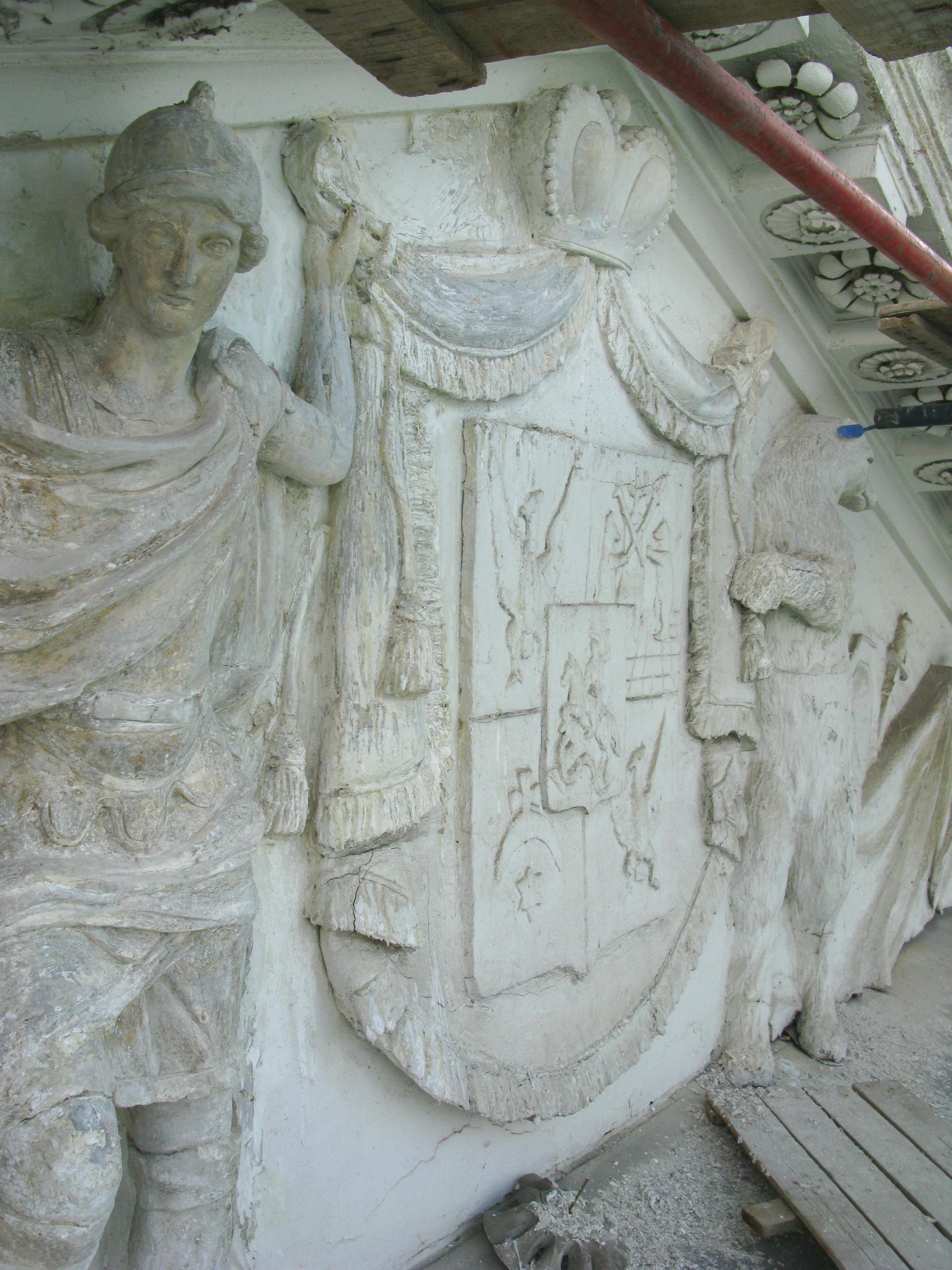 В результате проведенных натурных исследований Главного дома удалось установить, что фасады здания перестраивались в процессе строительства или вскоре после его завершения. Так ниши главного, дворового и часть ниш боковых фасадов были вытесаны, а не выложены в кирпичной кладке.