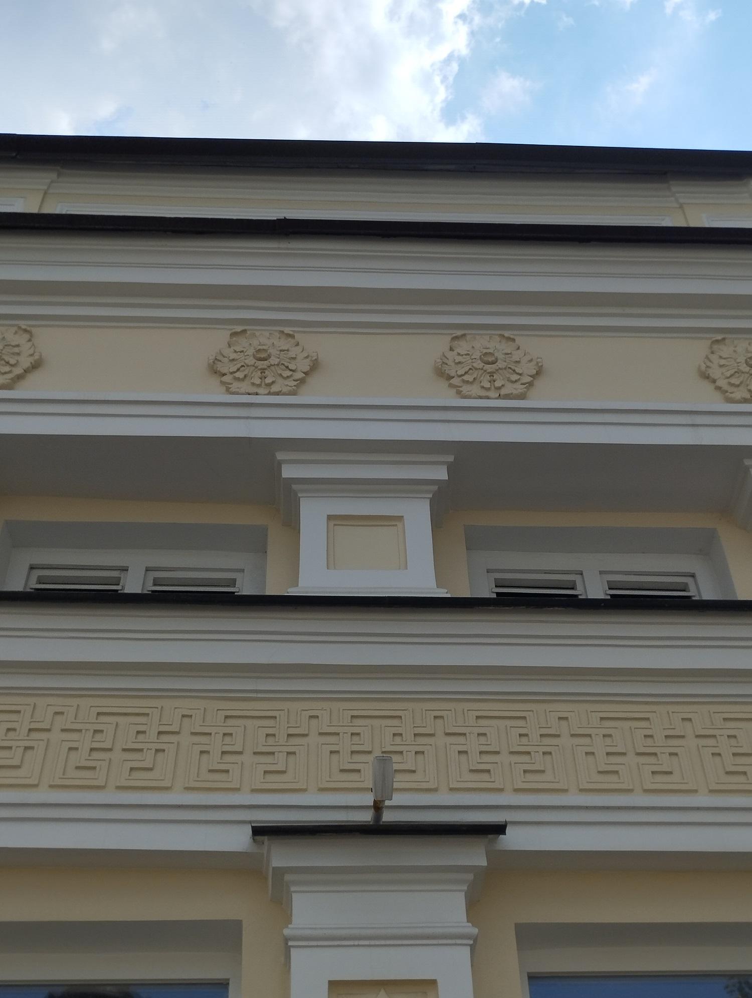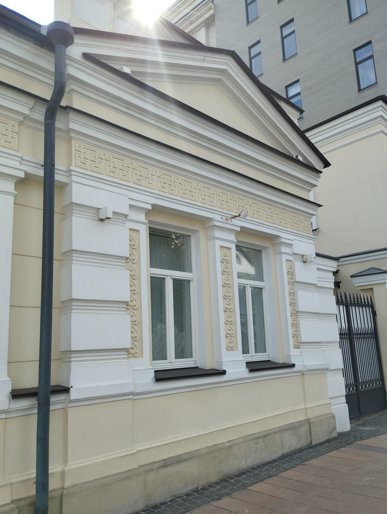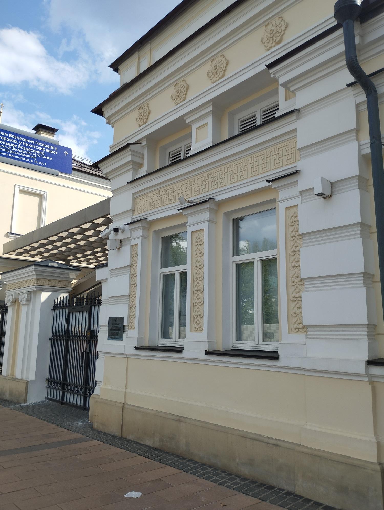 По ул. Малая Никитская расположены флигели небольшой городской усадьбы, главный дом которой прячется во дворе за каменной оградой по Б. Никитской улице.