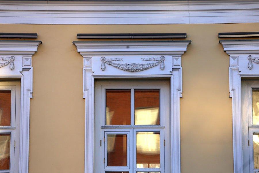 Печи и камины, составлявшие важную часть исторического интерьера, были отреставрированы с использованием оригинальных изразцов. Один из каминов был восстановлен как действующий, остальные использованы для скрытия современных инженерных коммуникаций. По образцам сохранившихся элементов в помещениях со стороны главного фасада воссоздали плафоны, окна и двери. Также в здание была интегрирована современная система приточно-вытяжной вентиляции и единая система теплоснабжения.