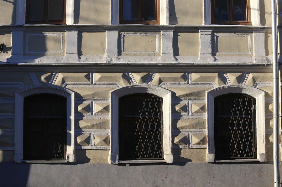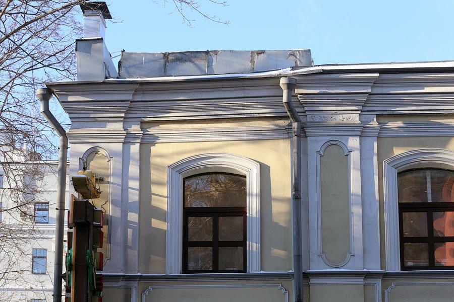Интересно, что эта усадьба – классический пример дома «с антресолями». Если пройти во двор дома, то можно увидеть небольшие окошки над вторым, главным, этажом - это и есть антресоль. Антресоль – это верхний полуэтаж дома. В «антресоли» обычно устраивали жилые комнаты, детские кладовые или селили прислугу. Не стоит путать антресоль с мезонином: мезонин – надстройка над верхней частью дома по ширине меньшая, чем протяженность фасада дома. Антресоль же – лишь полуэтаж большого объема, который, кстати, не обязательно должен находиться на последнем этаже. Таких домиков с антресолями было очень много в старой Москве.