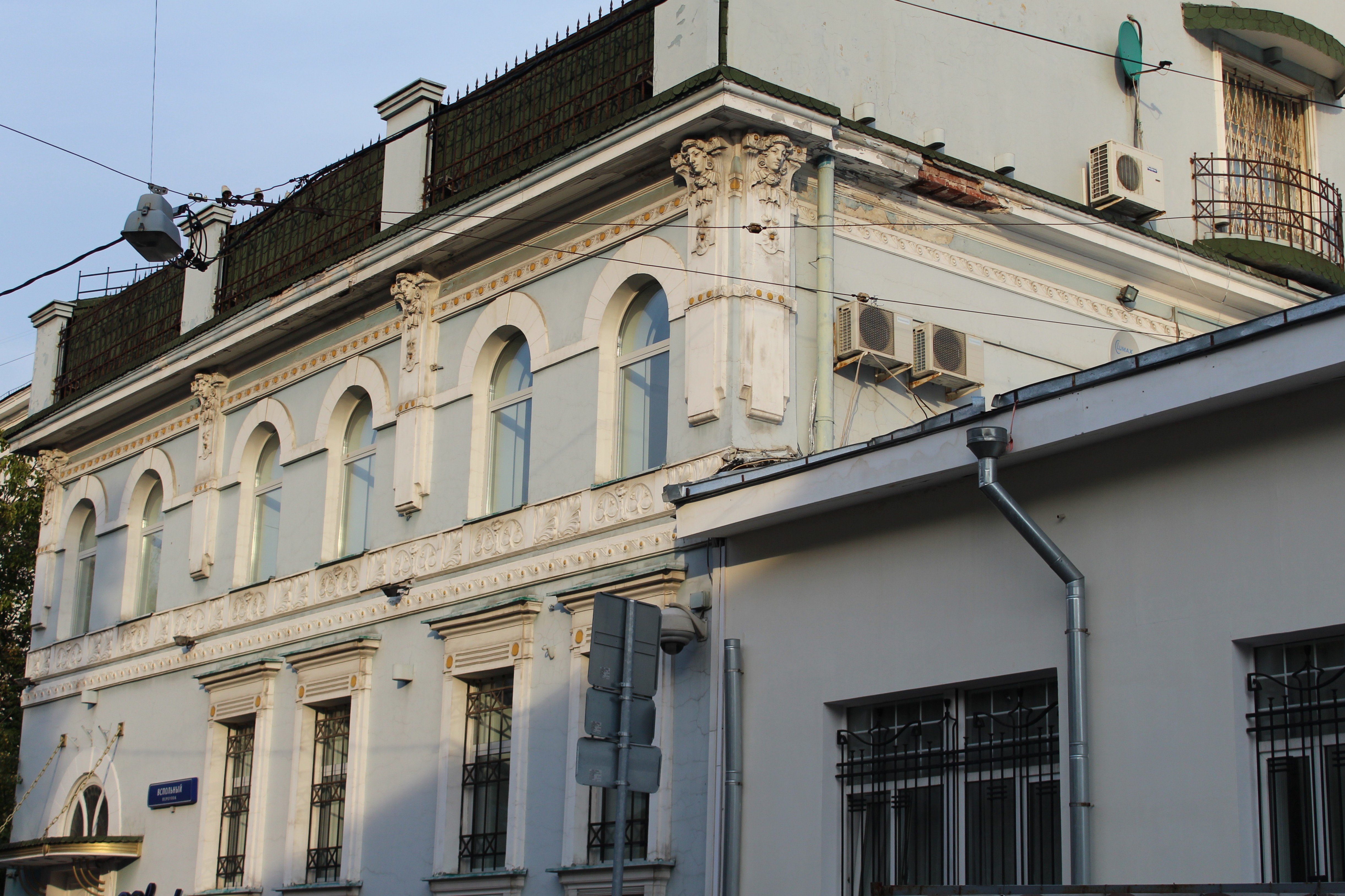 Усадьбу постигла та же участь, она почти полностью выгорела в пожаре 1812 года, тогда и произошел ее раздел на небольшие самостоятельные владения. Одно из них, занимавшее угловое положение в структуре квартала, стало застраиваться только после 1825 года. Тогдашние хозяева усадьбы решили разместить главный жилой дом на пересечении Георгиевского (современного Вспольного) и Гранатного переулков (строение № 1). Деревянный одноэтажный дом на каменном фундаменте простоял без изменений вплоть до последней трети XIX века и сменил за это время множество владельцев.