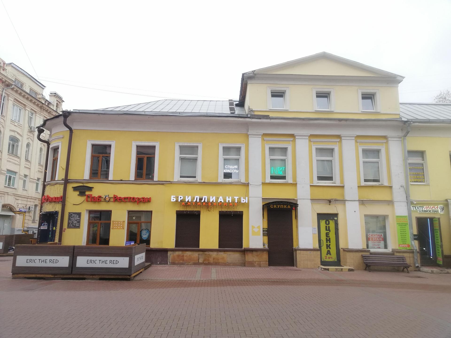 Дом в два этажа с мезонином и скруглённым углом построен в начале XIX века, после пожара 1812 года. В 1820-х годах здесь работала большая аптека Богдана Панке.