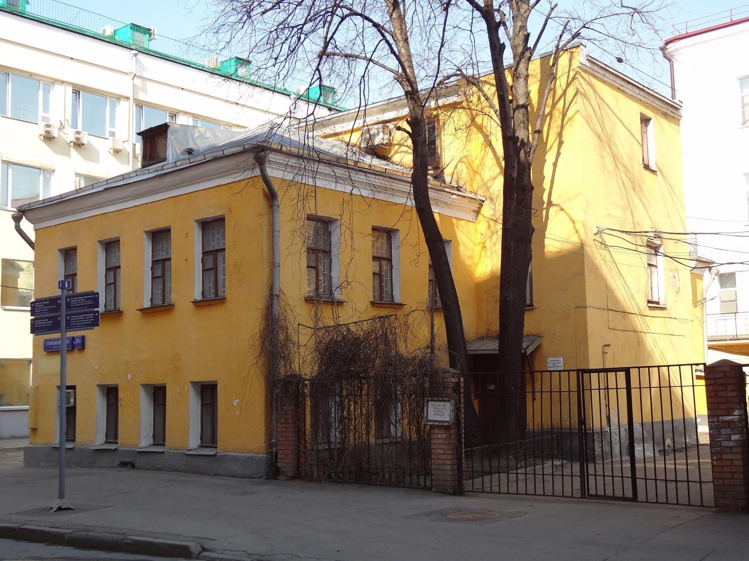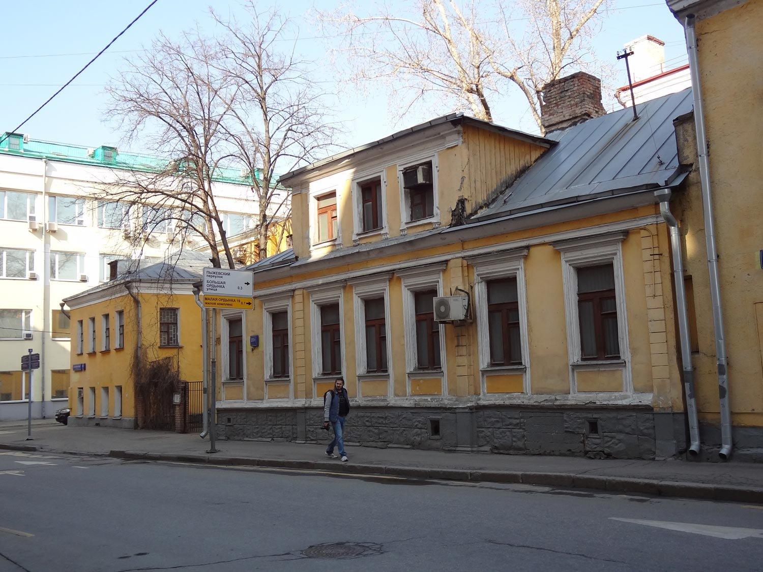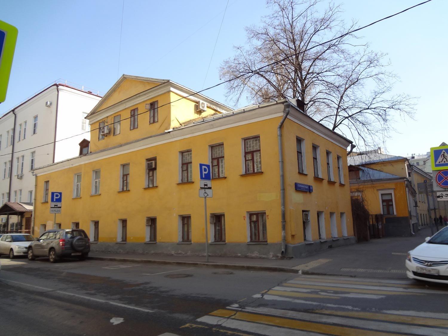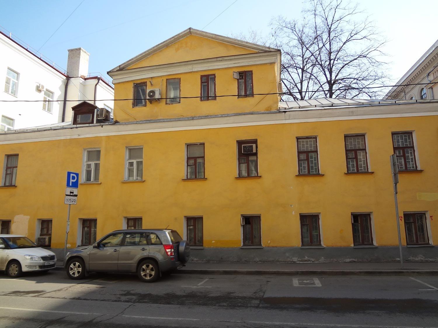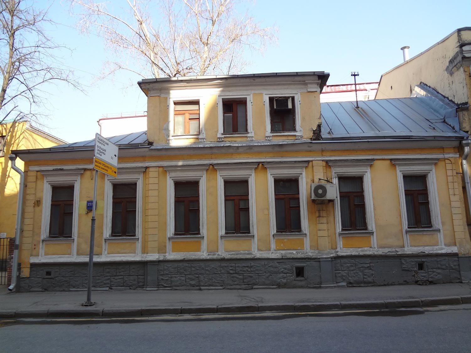 Характерный прием застройки переулков Замоскворечья конца XVIII начала XIX вв. это застройка небольшими городскими усадьбами, которые, как правило, перестраивались, надстраивались, меняли владельцев, а вместе с ними и декор. Небольшой основной дом усадьбы – одноэтажное строение с деревянным мезонином, фасадом, выходящее на переулок. Вход с парадного фасада отсутствует. Попасть в дом можно со двора, проходя между самим домом и прилегающим строением, которое, видимо, служило флигелем. Сейчас входные ворота с калиткой отсутствуют, но можно предположить, что они были и оформляли вход на внутреннюю территорию, видны рустованные углы, наличники с сандриками в стиле неоклассицизма. Сегодня здание требует реставрации.