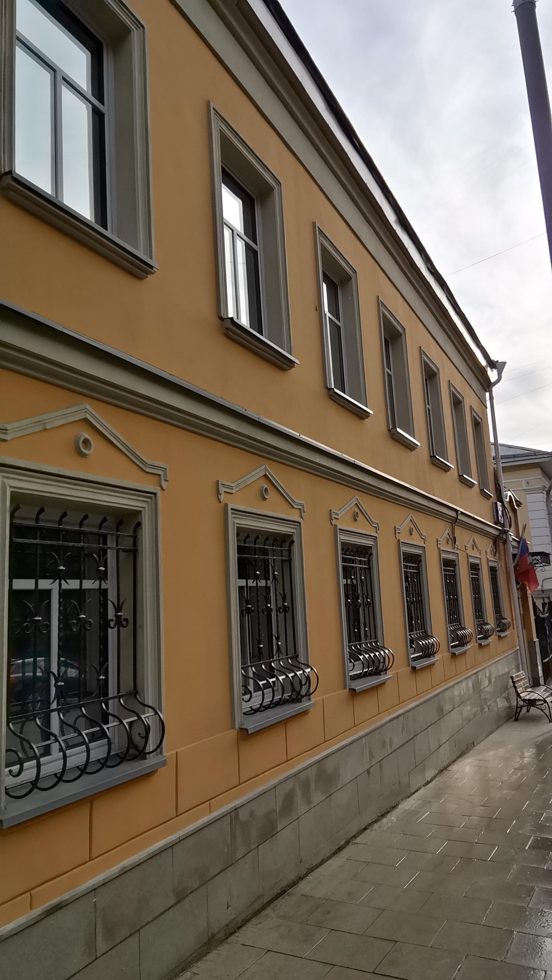 Купеческая жена В. И. Константиновна задумывала новый фасад здания с рустовкой, подоконными кронштейнами на втором этаже, замковыми камнями и лепниной над окнами первого этажа и т. д. Декор предусматривался более строгим и лаконичным. Возможно, существующий вид главный фасад приобрел позднее, в начале ХХ в., и соответствовал неоклассическим вкусам архитектуры того времени, но вероятно и то, что в процессе строительства проект обработки фасада был изменен.