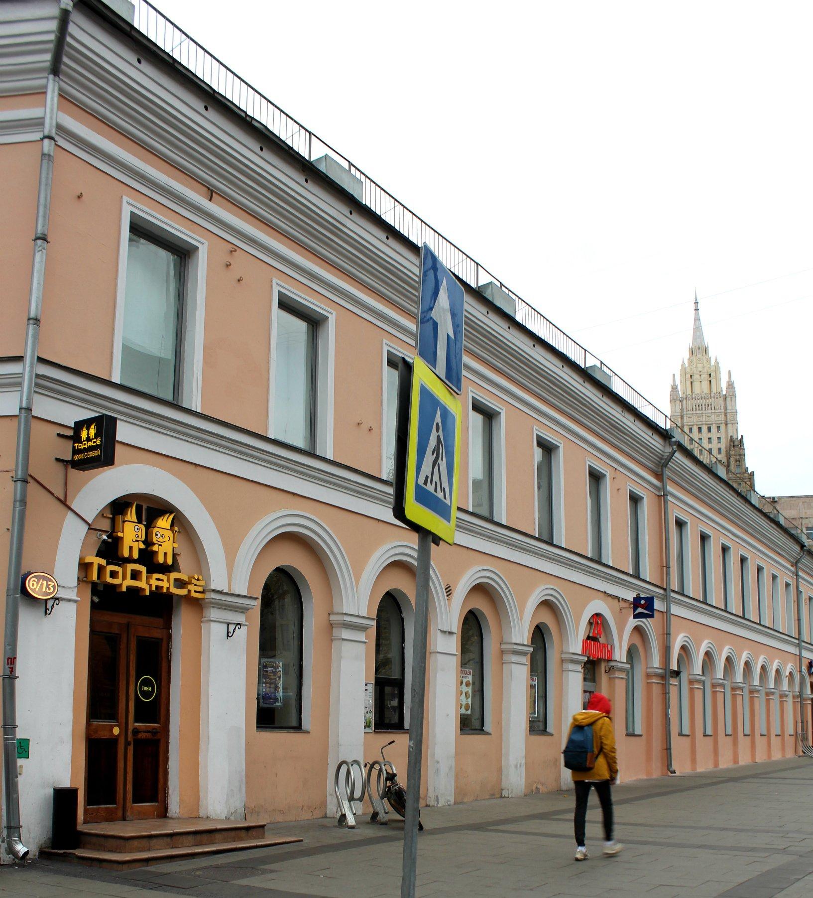 К середине XIX в. линии проезда от Кудринского рынка к Смоленскому (где пролегает сейчас Садовое кольцо) и бывших Проезжих переулков, именуемых в то время Малым и Большим Толстовскими, образуют плотный фронт домов с проездными арками и небольшими проходами.