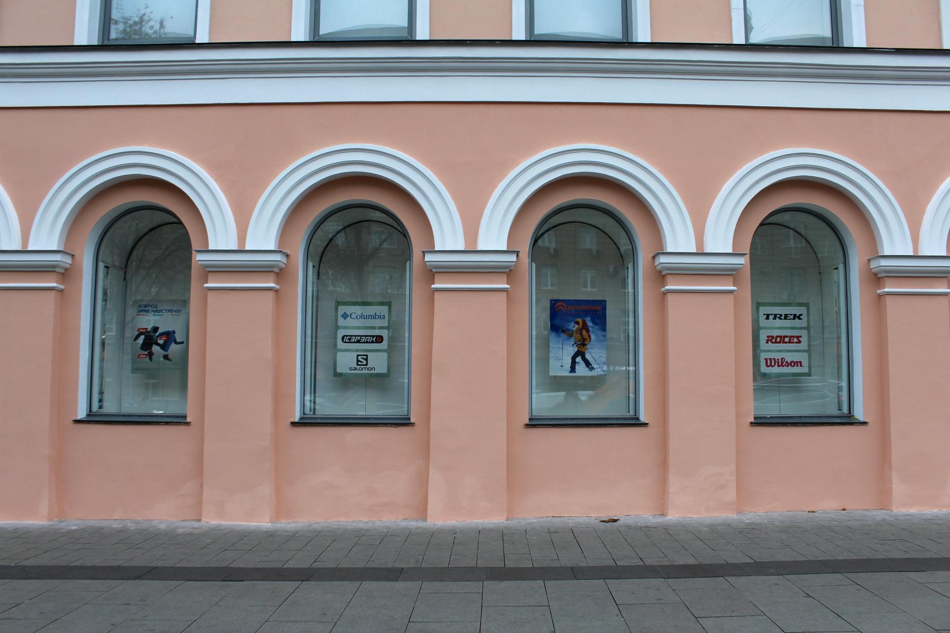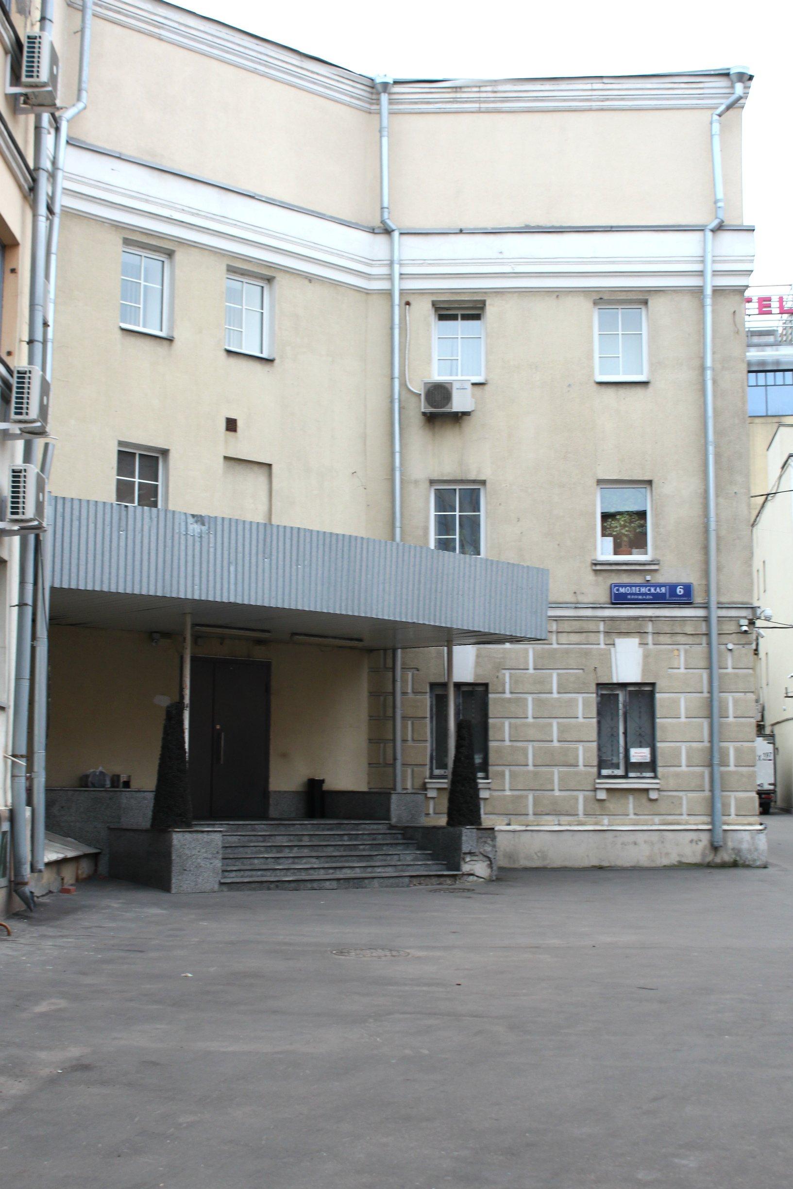 В 1847 г. к одноэтажному зданию вдоль красной линии Смоленской площади (стр. 1) с лавками и складами в подвале вплотную пристраивают двухэтажный объем с проездной аркой. Фасад решен в формах классицизма с характерным для торговых заведений арочным оформлением. Позднее ряд арочных проемов был заменен витринными окнами. Первый этаж вплоть до 1917 г. оставался торговым, а во втором этаже находились конторские помещения и меблированные комнаты.