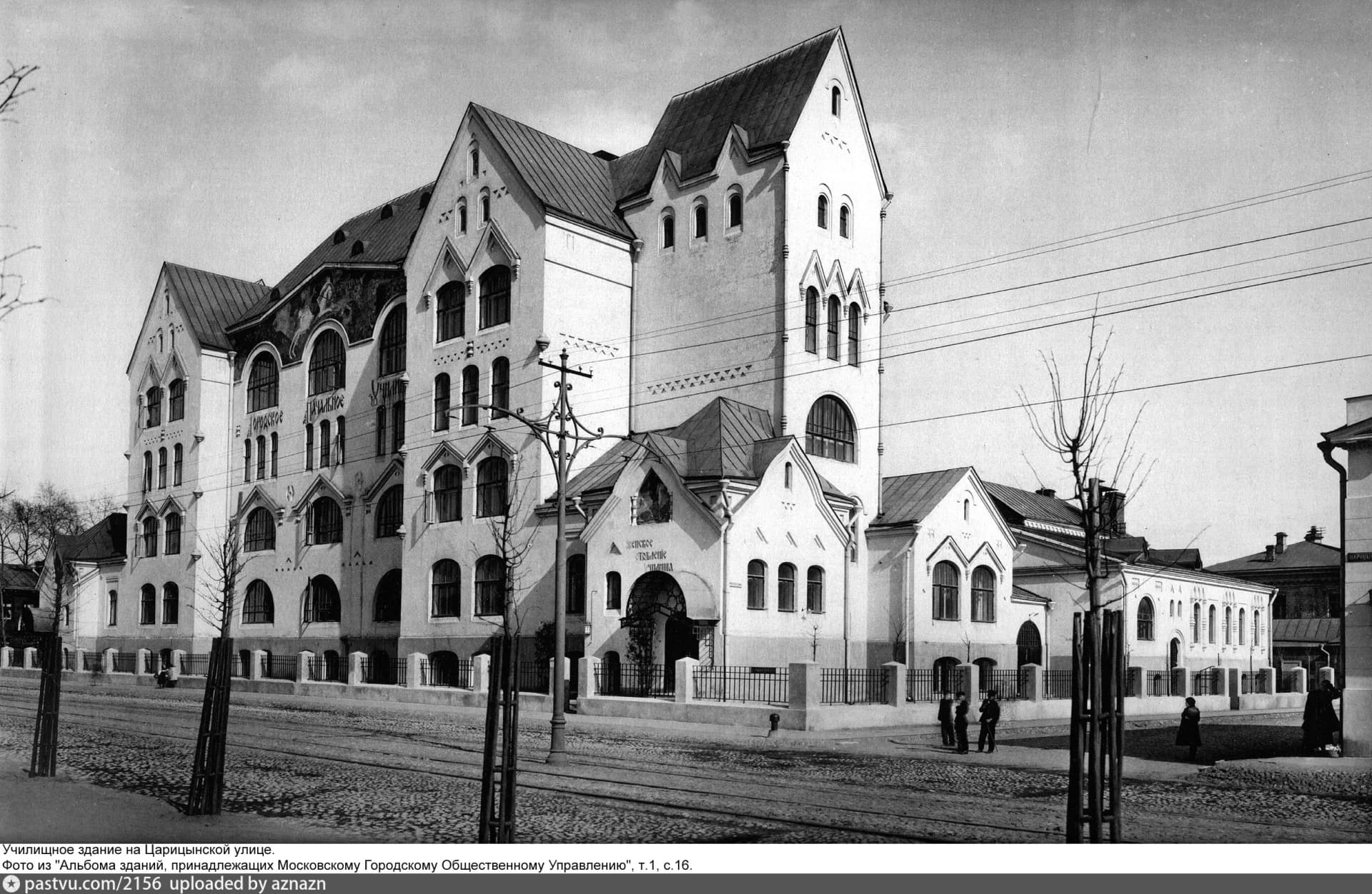 Дом городских начальных училищ – примечательное здание в Москве, построенное в 1911-1912 гг. под руководством архитектора Анатолия Остроградского. Это здание, признанное объектом культурного наследия, возведено на Девичьем поле по распоряжению городских властей Москвы. На исторической фотографии 1910-1915 гг. запечатлен главный фасад, украшенный надписью – "Городское начальное училище", и вывеской над крыльцом с левой стороны – "Женское отделение училища". Исчезнувшие со временем надписи были выполнены изящным старославянским кириллическим шрифтом с киноварными буквами.