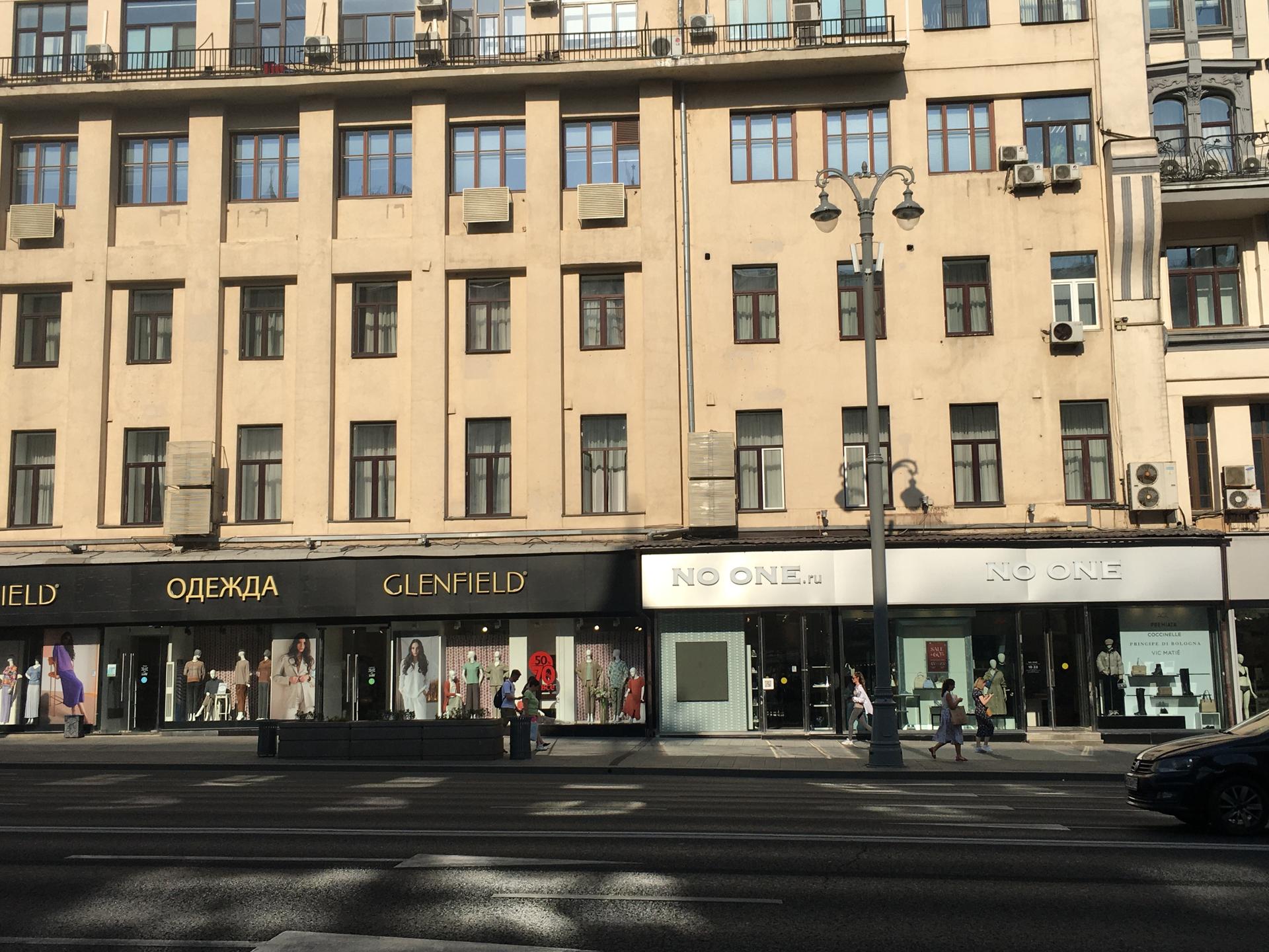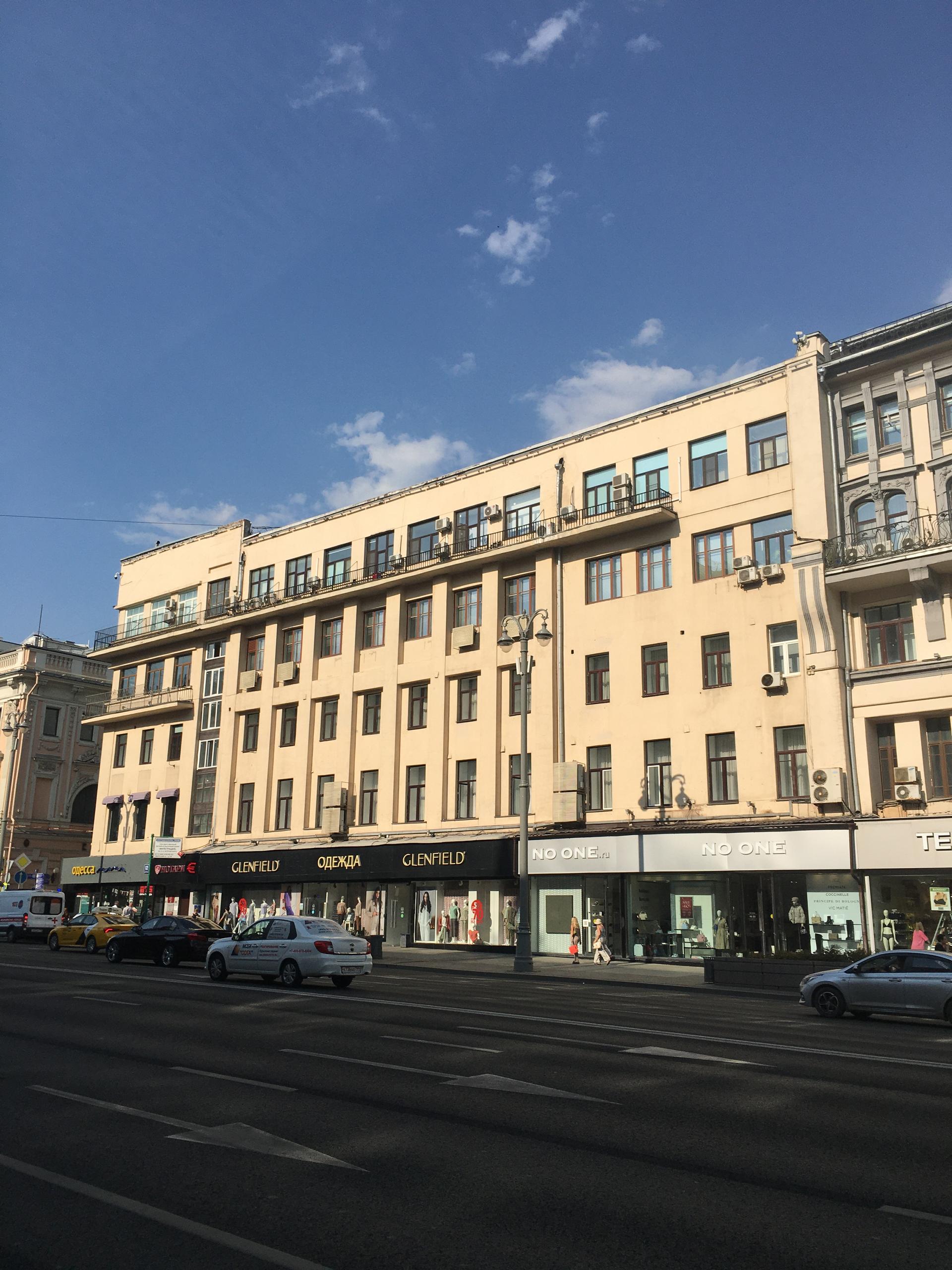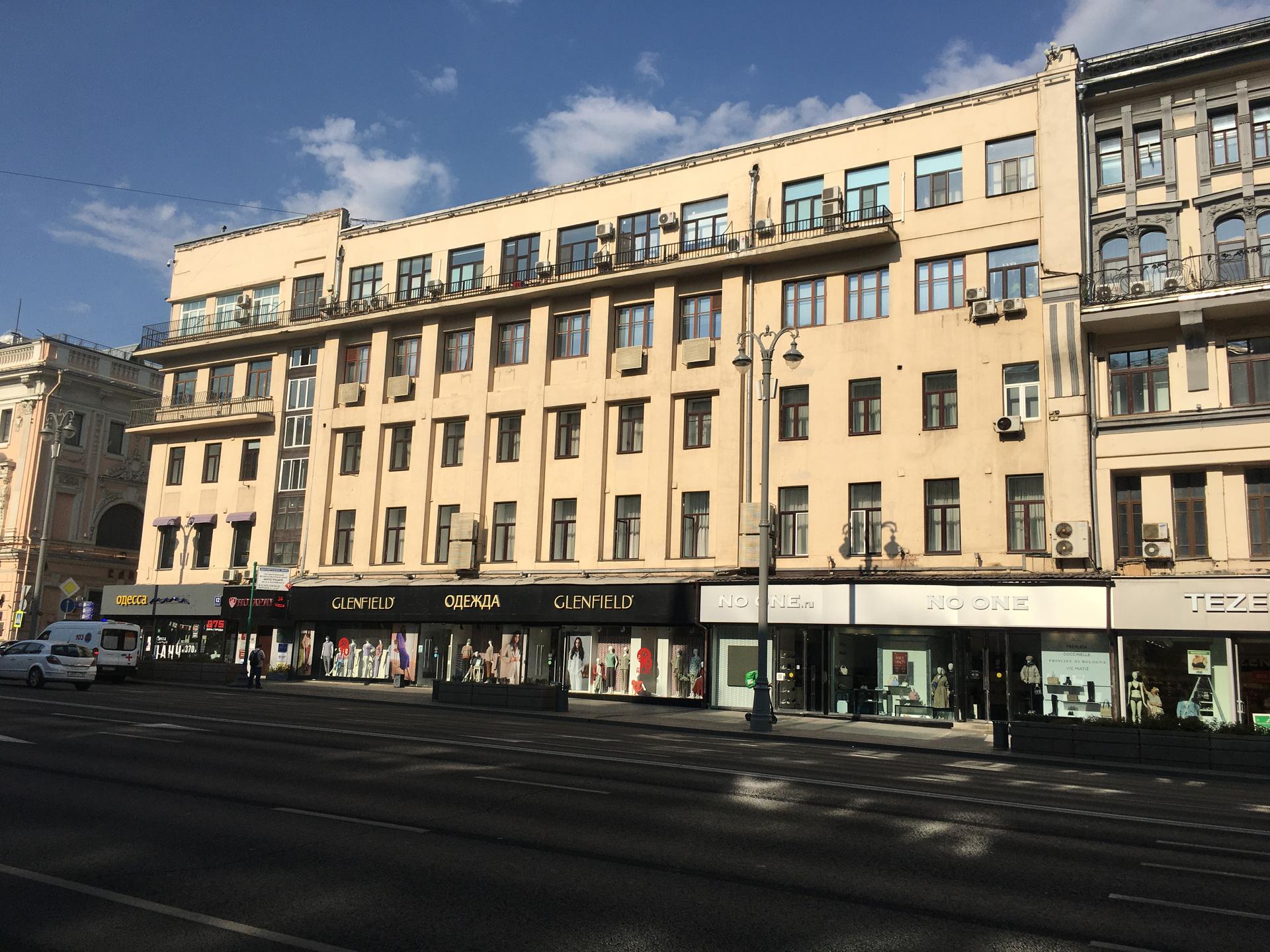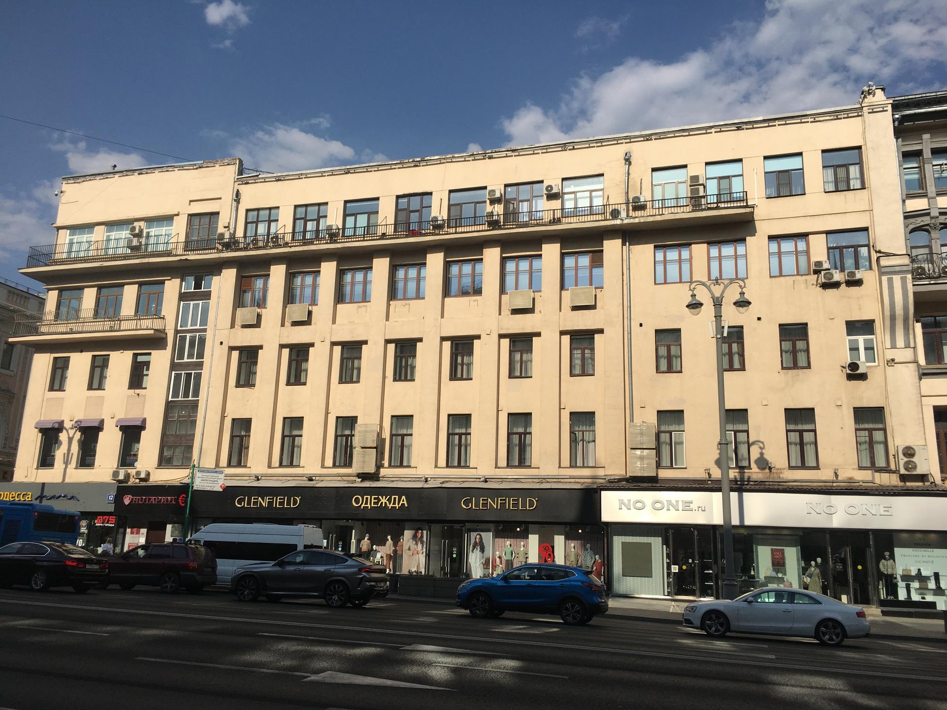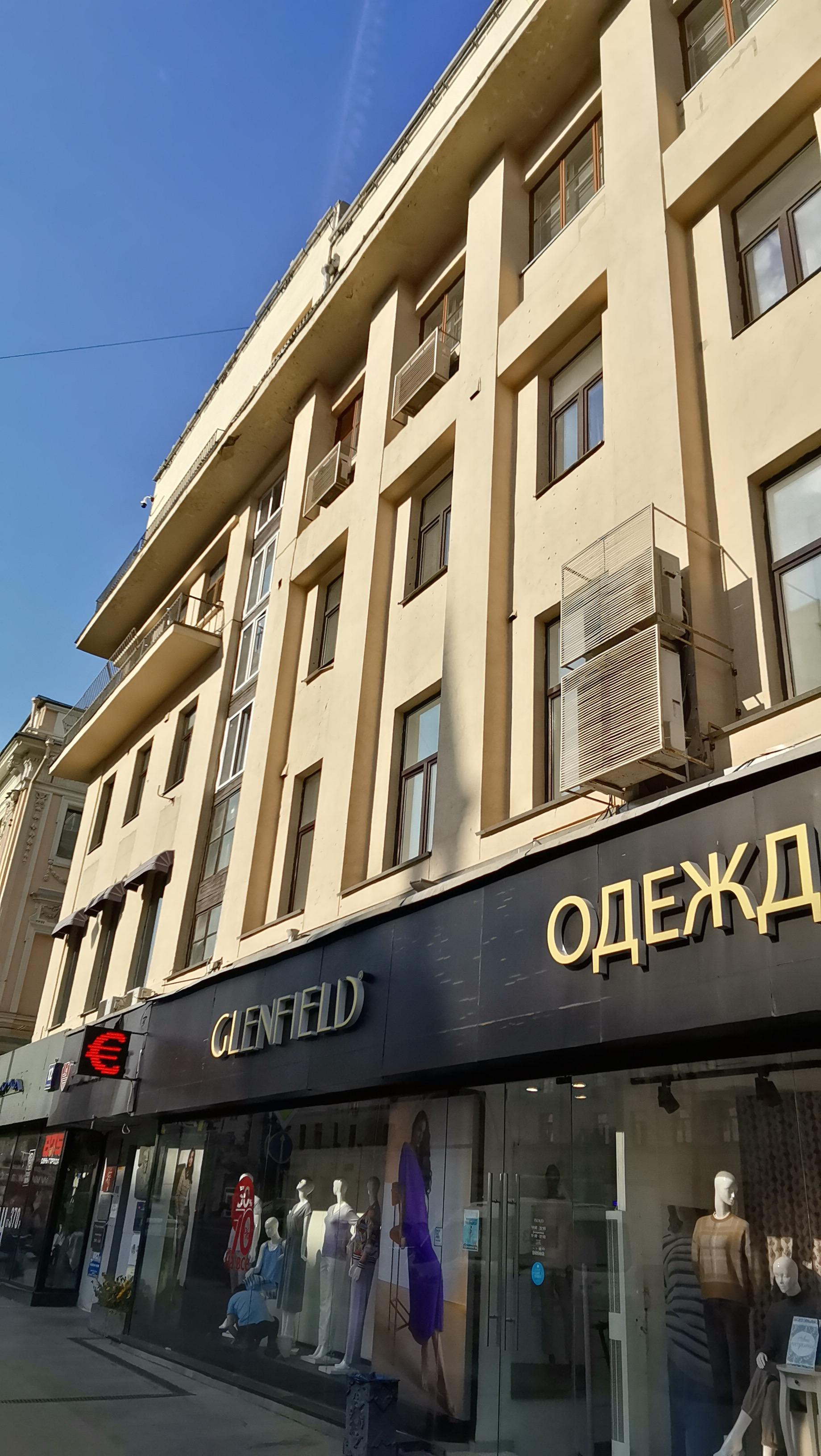 Здесь должны были размещаться квартиры сотрудников «Центропечати», а также конторы и магазины. В советское время здесь был магазин «Гастроном», сейчас его место заняли дорогие бутики и кафе. Наверное, они располагаются как раз в том месте, где у Шевалдышева было фойе его великолепной гостиницы.
