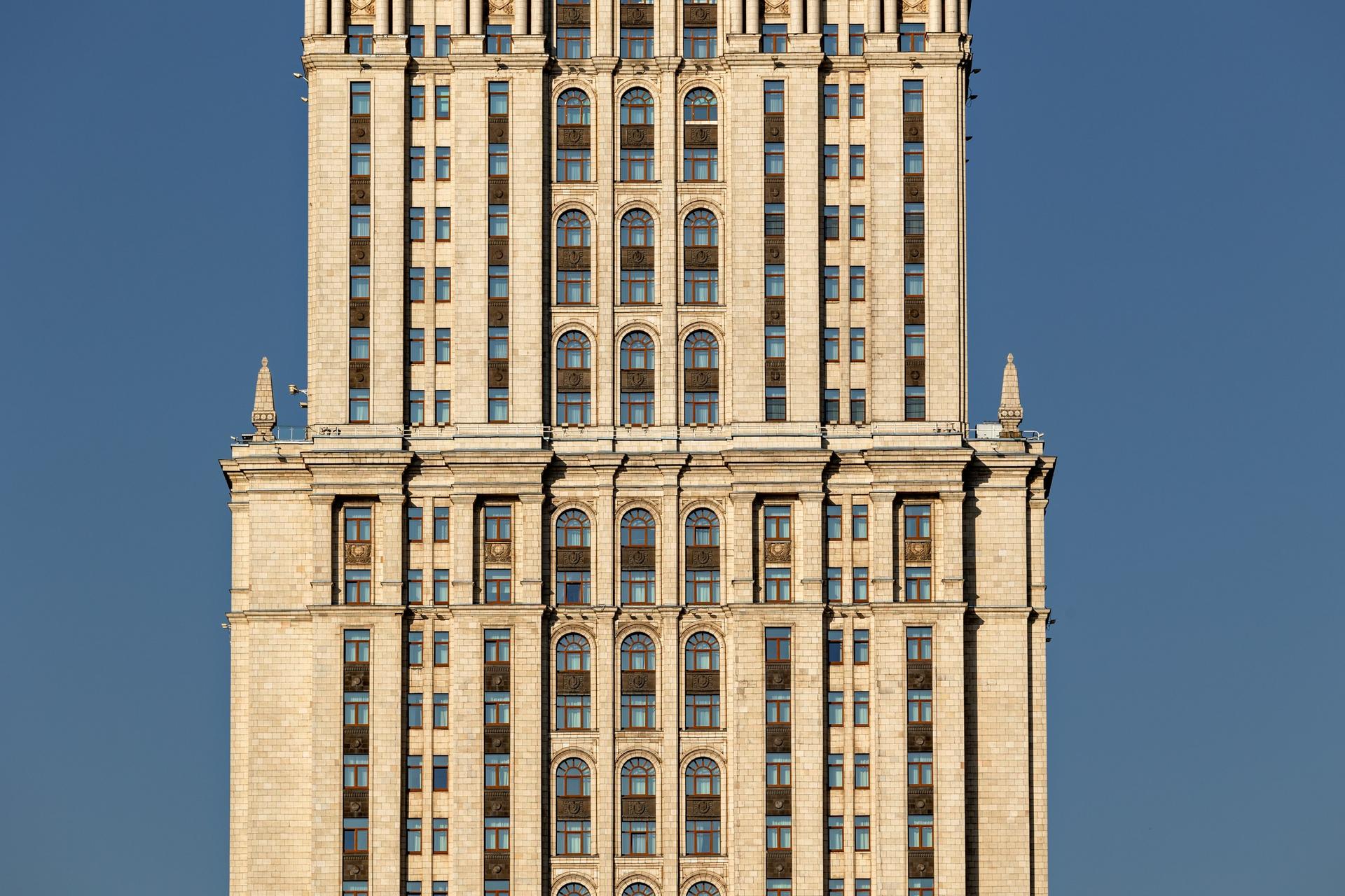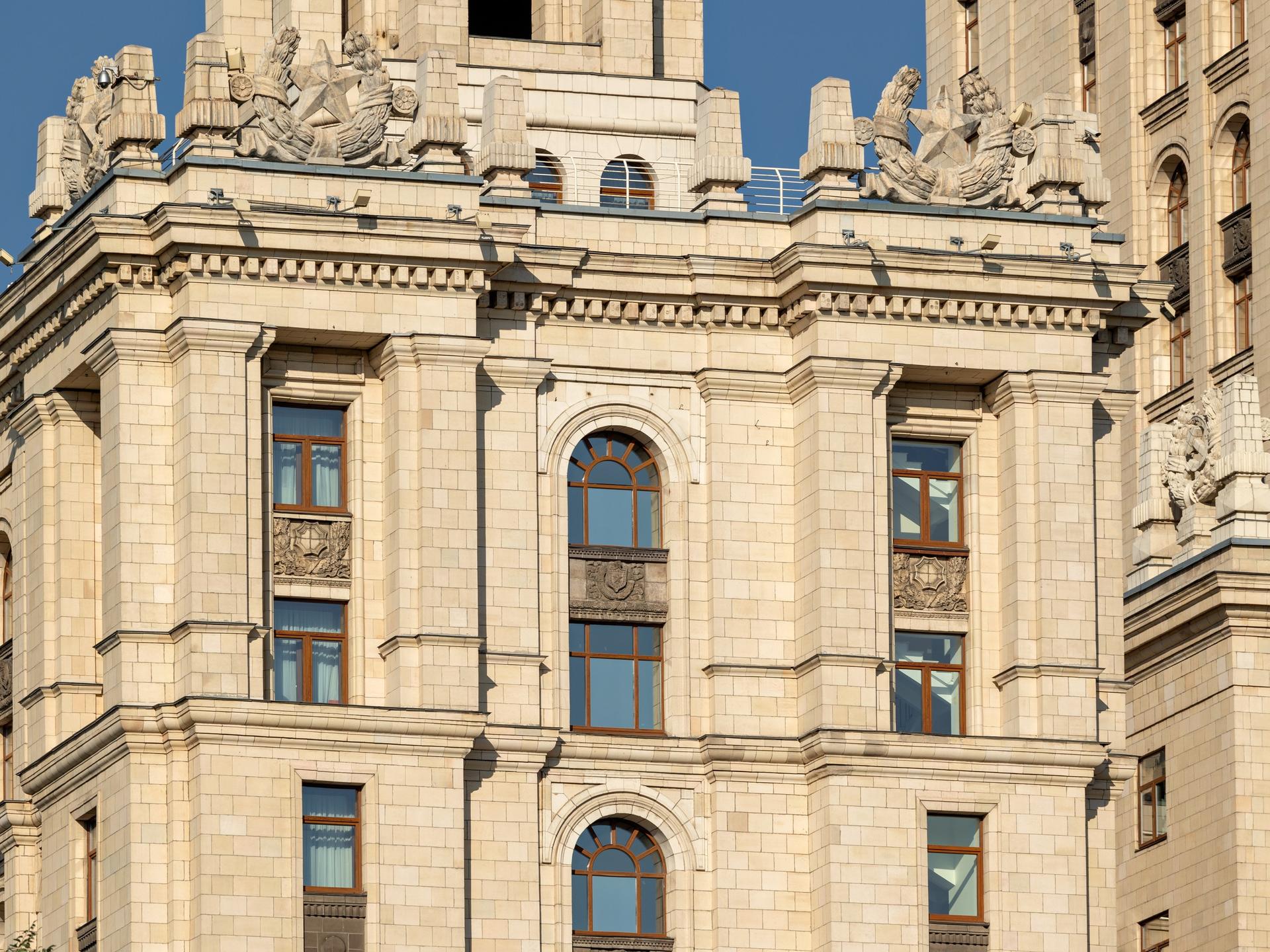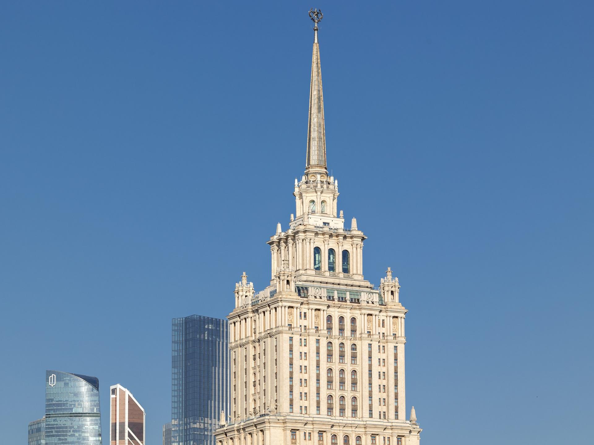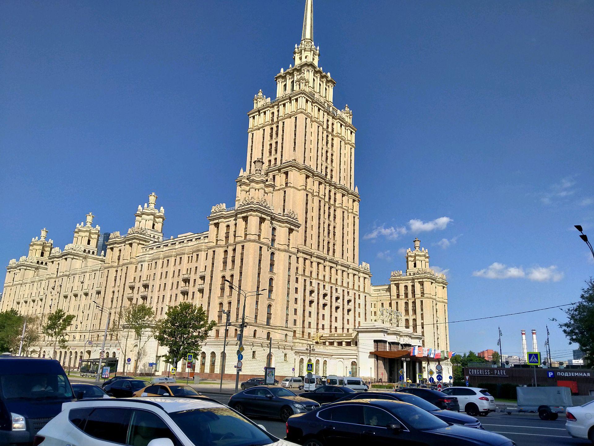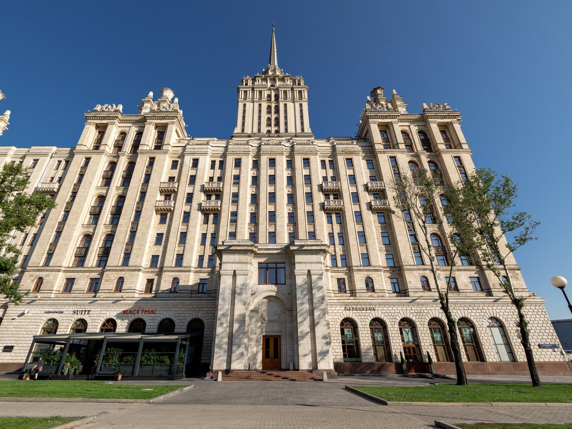 Одна из семи сталинских высоток, вторая по высоте и находящаяся на набережной Тараса Шевченко, сейчас носит помпезное название – Рэдиссон Ройал -Московская (Radisson Royal Hotel, Moscow). Официальная категория пять звезд, но пометочка «Ройал» делает ее статус еще выше.