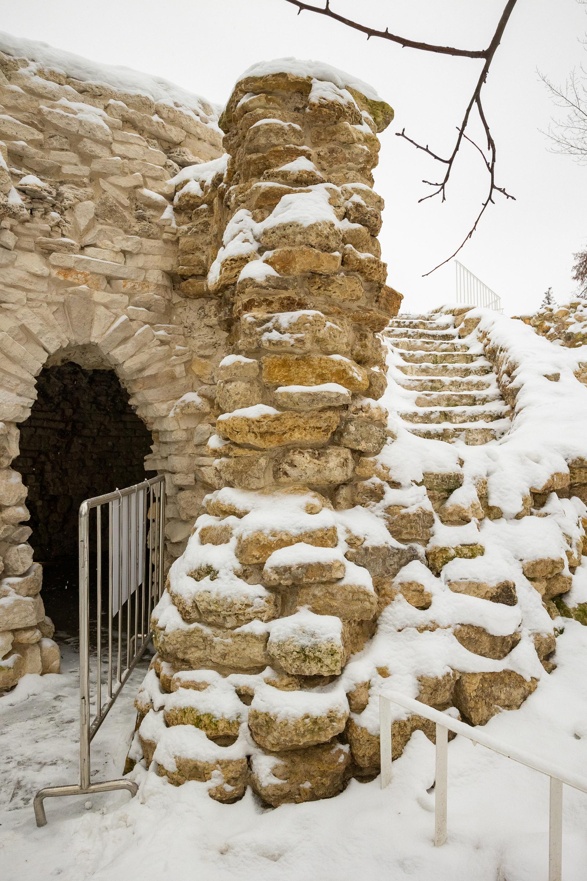 Первый этап работ включал в себя расчистку смотровой площадки, укрепление фундамента, стен и свода. Реставраторы тщательно очистили и отреставрировали каменную кладку, стараясь сохранить аутентичный облик сооружения. Были проведены масштабные грунтовые работы для предотвращения дальнейших разрушений.