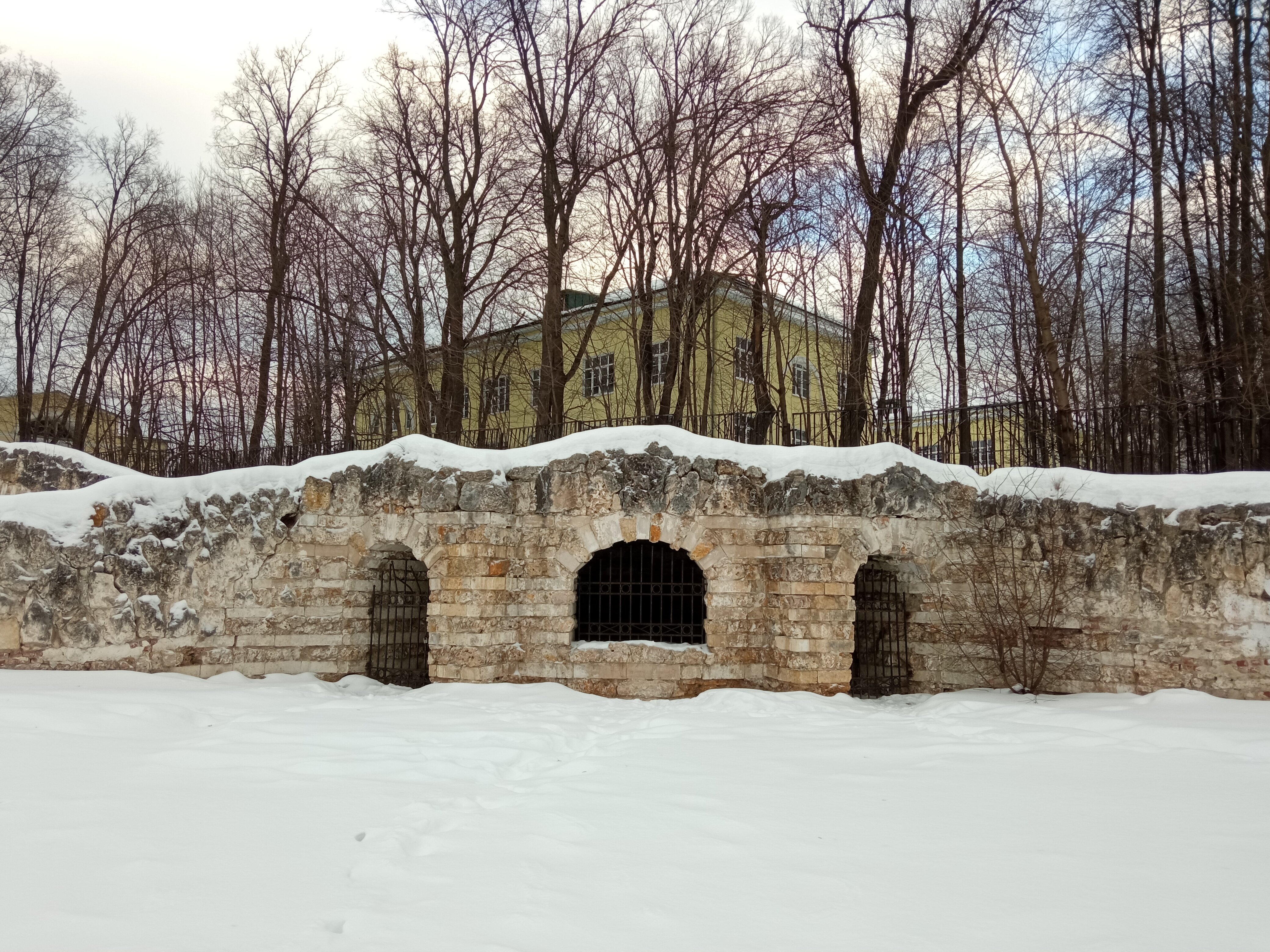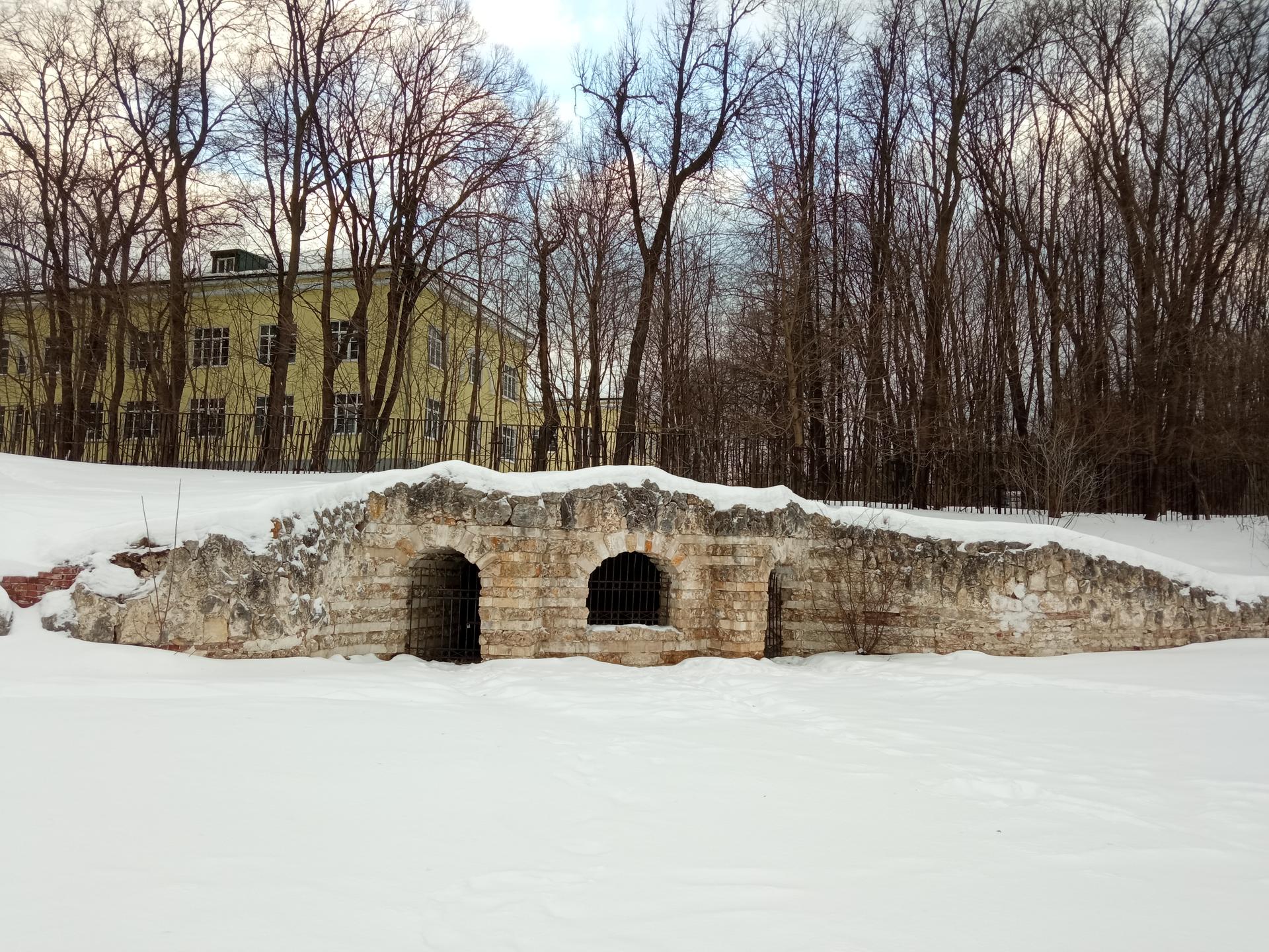 В Кузьминках нет крутых перепадов поверхностей, но когда строили парадный двор и выравнивали под него площадку, образовывался откос на берегу пруда. В нем-то и сделали гроты. Они были созданы между 1811 и 1830 гг. Первая из этих дат - время начала разработки на территории имения Английского, то есть пейзажного парка (сада), в общий характер которого вполне вписываются такие романтические "руинные" композиции. Элементы гротов выложены декоративной кладкой, в которой чередуются невысокие ряды гладко тесаного белого камня с более высокими рядами ноздреватого декоративного камня. Другая дата (1830) приводится в документах, в которых упомянуты ремонтные работы в гротах. Одновременно в парке привели в порядок некие "гипсовые фигуры", которые, возможно, были установлены перед "трехарочным" гротом. Во всяком случае, у его крайних арок расположены пьедесталы, на которых, судя по всему, изначально находились какие-то декоративные фигуры.