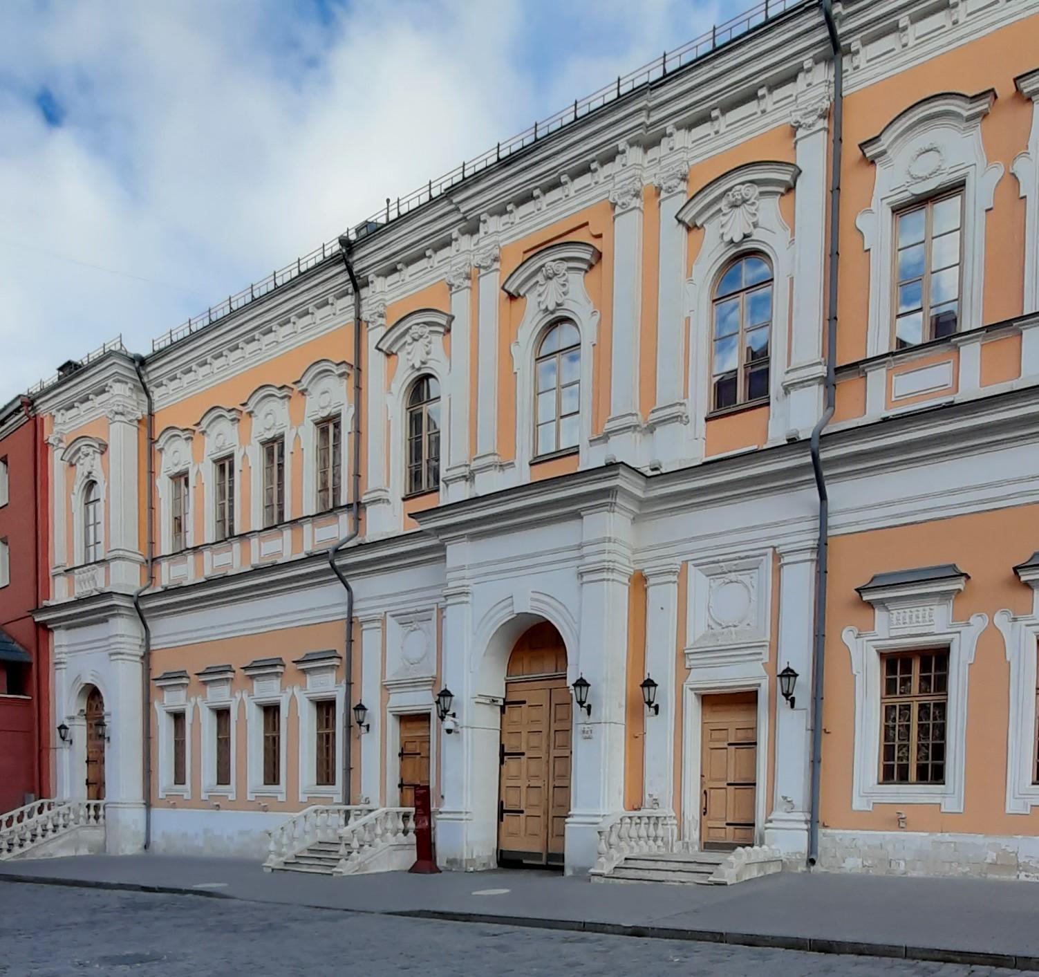 Здание Губернского правления построено в стиле барокко: отделка резным камнем, развитые карнизы украшают фасад, внутри же расположены высокие сводчатые помещения. Первоначально вокруг проездной арки стояли сложно скомпонованные колонны, поддерживавшие балкон второго этажа. Над карнизом, над проездной аркой размещался фигурный щипец с композицией из оружия и доспехов, украшенной двуглавым орлом. Здание завершала высокая мансардная крыша с переломом. Сквозь открытые ворота можно увидеть один из красивейших фасадов нарышкинского барокко конца XVII века: корпус Монетного двора, украшенный изразцовым фризом и резными колонками между окон верхнего этажа.