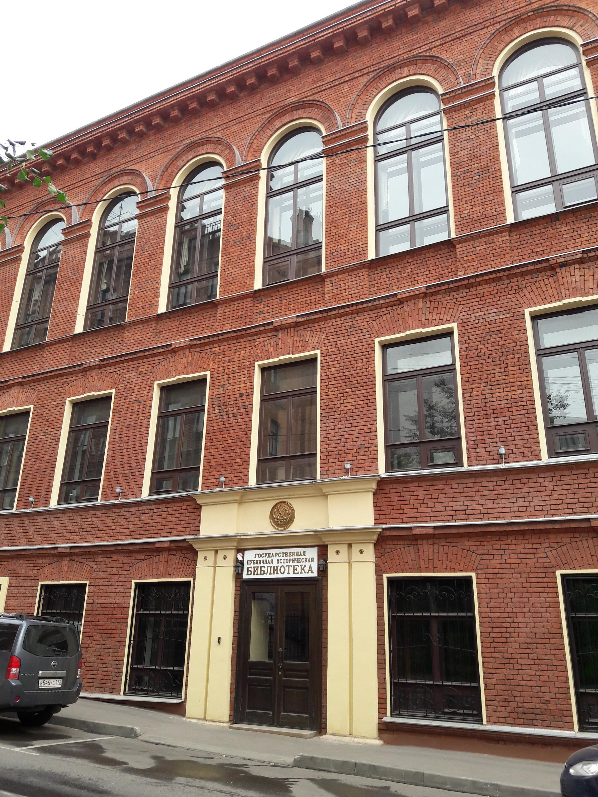 С 1938 года в здании располагается Государственная публичная историческая библиотека России. Её фонды, основанные на собраниях многих замечательных литературоведов и собирателей книг, стали базой для воспитания не одного поколения учёных-историков, краеведов, преподавателей истории. Основой этого собрания явилась библиотека, собранная историком и археологом Александром Дмитриевичем Чертковым в первой половине XIXвека.