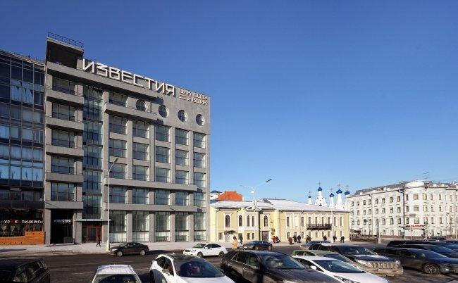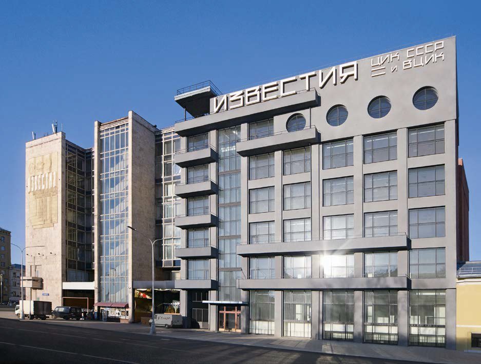 «Известия» занимают высокое здание в стиле "авангард" с рядом больших круглых окон на верхнем этаже, которое фланкирует Пушкинскую площадь с севера.