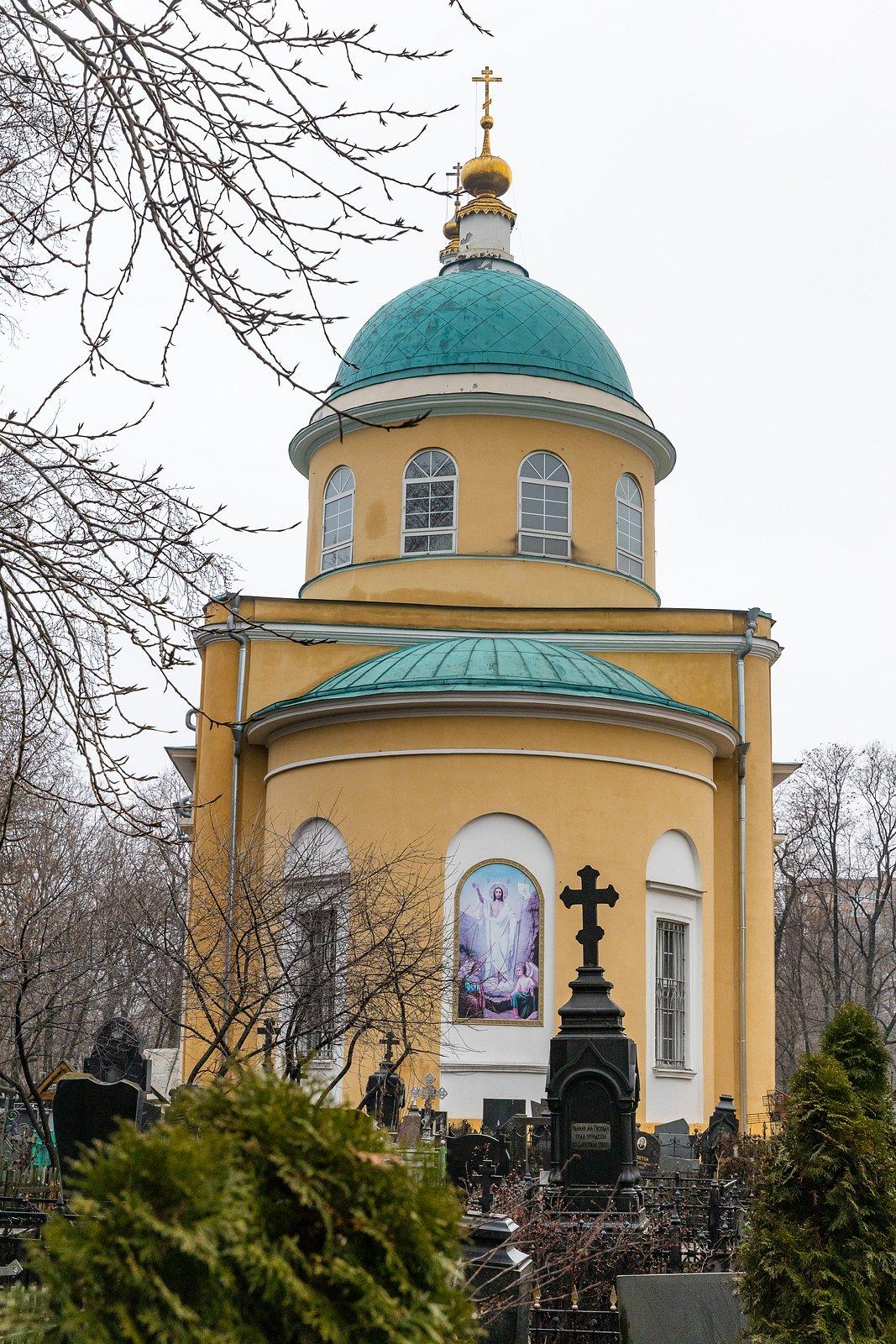 Всехскорбященская церковь в советское время была одним из главных храмов обновленцев – здесь часто совершал богослужения митрополит Александр Введенский. Он и похоронен тут же – за апсидой.