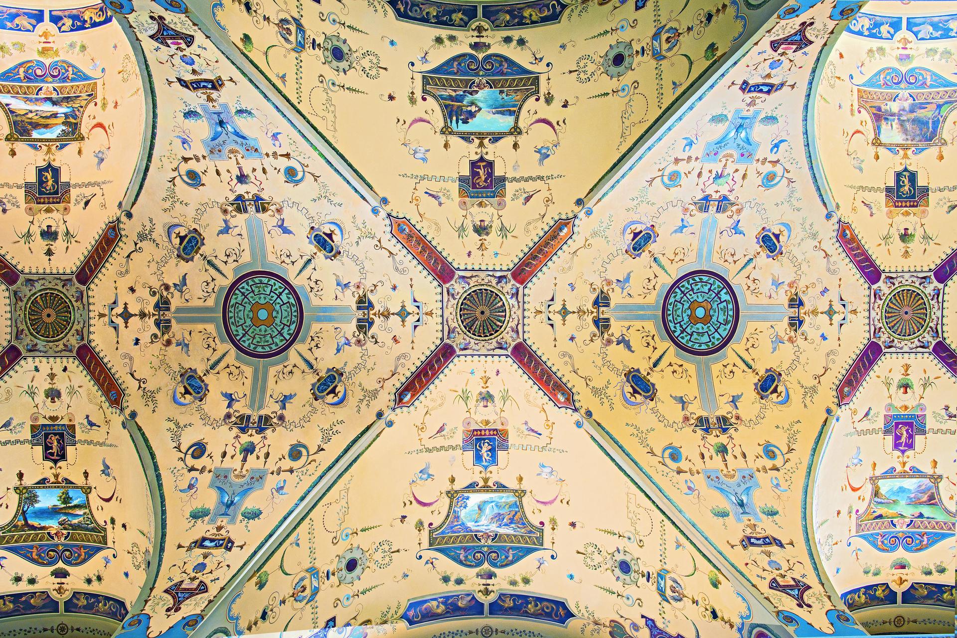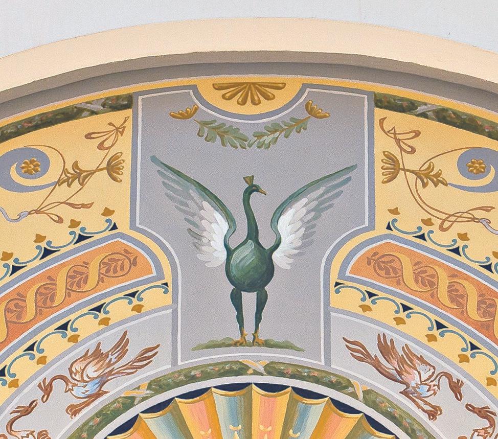 Внутренние работы включали демонтаж поздних перекрытий и лестниц. Благодаря этому, зданию был возвращен его двухсветный объём. Были раскрыты росписи сводов в неоклассическом стиле с растительным орнаментом и пейзажными панно, ранее закрашенные масляной краской. Реставрация живописи проводилась по сохранившимся фрагментам и историческим материалам, что позволило максимально точно воссоздать первоначальные изображения.