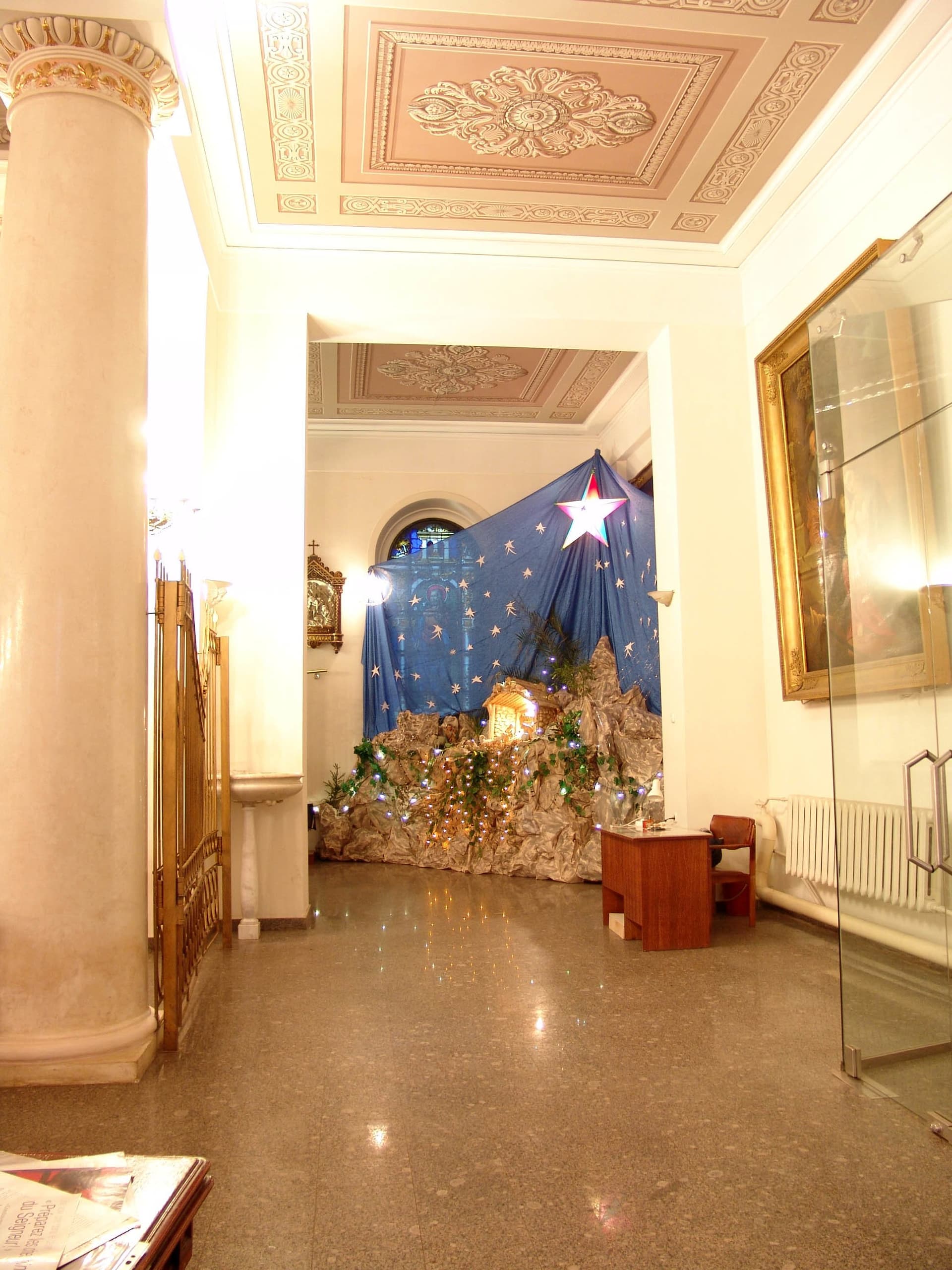 Особое внимание уделили реставрации уникальных интерьеров. Одним из самых сложных этапов стало восстановление мраморного пола церкви, который за годы эксплуатации покрылся трещинами и потемнел. Реставраторы использовали высококачественный греческий мрамор, тщательно подобранный в соответствии с историческим цветовым решением.