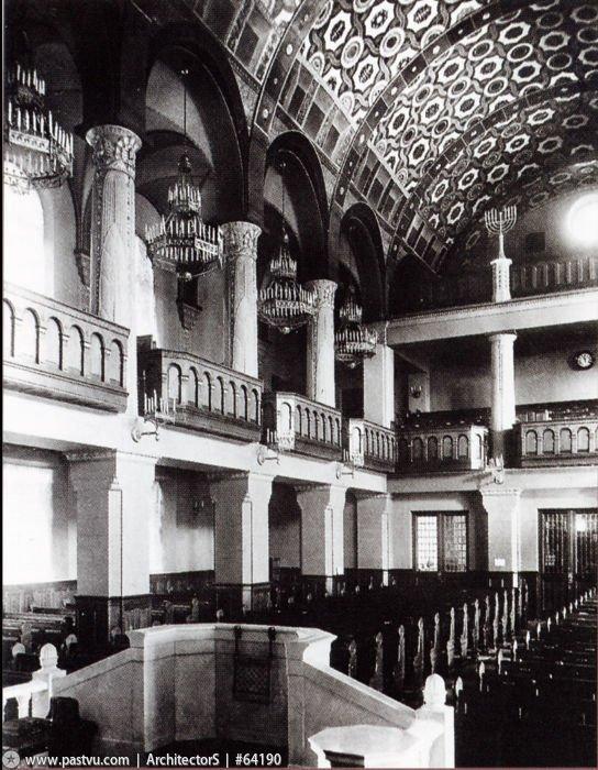 В 1886 г. купец первой гильдии, банкир, председатель московской еврейской общины Лазарь Соломонович Поляков приобрел в Спасоглинищевском переулке участок земли неподалеку от располагавшейся на углу Солянского проезда и действовавшей еще с 1870 года хоральной синагоги. Через год по проекту архитекторов С.С. Эйбушица и С.К. Родионова здесь началось строительство нового здания Московской хоральной синагоги. Работы были завершены в 1891 году, но молитвенный дом был опечатан по распоряжению городских властей. Разрешение на открытие синагоги московской еврейской общине удалось получить только через пятнадцать лет. Тогда же был приглашен известный зодчий Р. И. Клейн, который произвел перепланировку внутренних помещений с отделкой в древневосточной стилистике в сочетании с элементами модерна. 1 июня 1906 года синагога была торжественно открыта. Работы по отделке интерьеров продолжались и после ее открытия, до 1911 года.