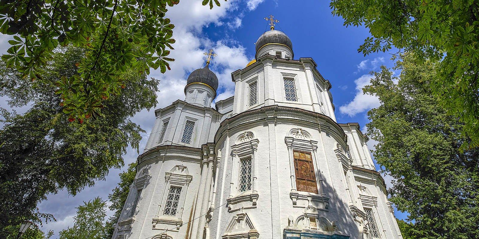 Пустошь Узкое (Уское) в конце 1620-х годов была куплена Максимом Стрешневым, двоюродным братом царицы Евдокии Лукьяновны, который выстроил здесь усадьбу. У одного из его потомков в 1692 году Узкое купил боярин Тихон Стрешнев, который заказал тут строительство пятиглавой церкви, сооружённой к 1697 году. Храм имел своеобразный четырёхлепестковый план. Все его пять глав-башен были одинаковой высоты, в одной из них (над входом) устроена колокольня (после реставрации 1970-х годов главы получили луковичные купола — предыдущие купола конца XVIII века были другими, более вытянутыми вверх). Этот пятибашенный храм, посвящённый Казанской иконе Божией Матери, уникален для русской архитектуры. В краеведческой литературе ошибочно считается, что автором его проекта был Осип Старцев, который работал над некоторыми важными соборами и в Москве, но документальными данными работа Осипа Старцева в Узком не подтверждается. Настоящий автор храма в Узком неизвестен.