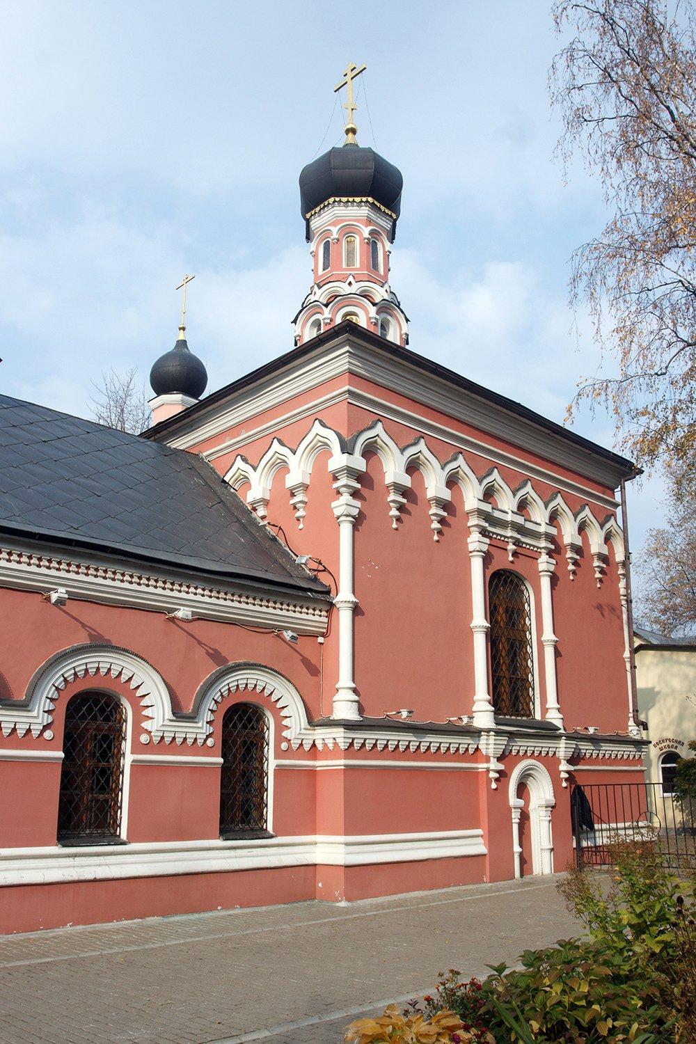 Основная часть церкви представляет собой четверик с одноглавым завершением. Под карнизом пояс из кокошников, слишком мелких по сравнению с прототипами XVII века, что отсылает к аркатурным поясам XV века, например: у церкви Ризоположения в Кремле.