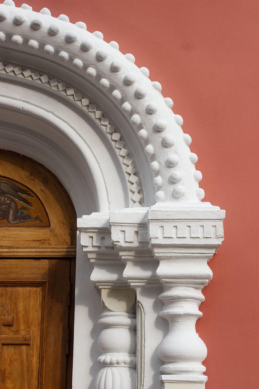 Храм построен в псевдорусском стиле, стилизован под архитектуру русского узорочья XVII века. Однако это больше касается деталей: например, арочный портал с юго-западной стороны. В Москве можно найти целый ряд прототипов этого портала: например, у церквей Косьмы и Дамиана в Старых Панех, Троицы в Листах, Святого Владимира в Старых Садах, Иоанна Предтечи под Бором в Заречье. Окна с килевидными завершениями над порталом тоже типичны для допетровского узорочья. А вот звонница такого типа, завершающая переднюю часть церкви, в XVII веке могла быть построена только отдельно от церкви. Вертикальные «ширинки» по краям переднего фасада – ряды квадратных профилированных ниш с ромбиками по центру – тоже мотив, взятый из узорочья, но в XVII веке такие элементы использовали в украшении обходных галерей, пристроенных к церквям.