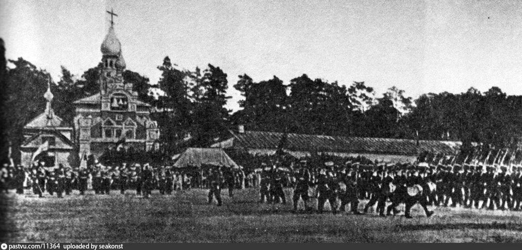 Само название церкви в наше время вызывает вопросы. Ведь то, что мы привыкли называть Ходынским полем, находится совсем в другом месте, внутри окружной железной дороги и в двух километрах от нужного нам храма. Однако в XIX веке Ходынское поле было гораздо больше по площади и доходило почти до Щукина. В 1900-е годы окружная железная дорога разделила поле на две части. Еще в первой половине XIX века на Ходынке стали появляться военные лагеря. Они разместились как раз в восточной части поля, ближе к Щукину. В начале ХХ века эту часть называли Военным полем, а с 1922-го стали именовать Октябрьским полем. В 1930-е годы поле активно начали застраивать бараками, а позже, в 1940–50-е годы, – сталинскими домами. Военные лагеря располагались севернее нынешней улицы Маршала Рыбалко. С севера от военных лагерей располагалась Большая Всехсвятская роща, от которой до нашего времени сохранилась только небольшая часть.