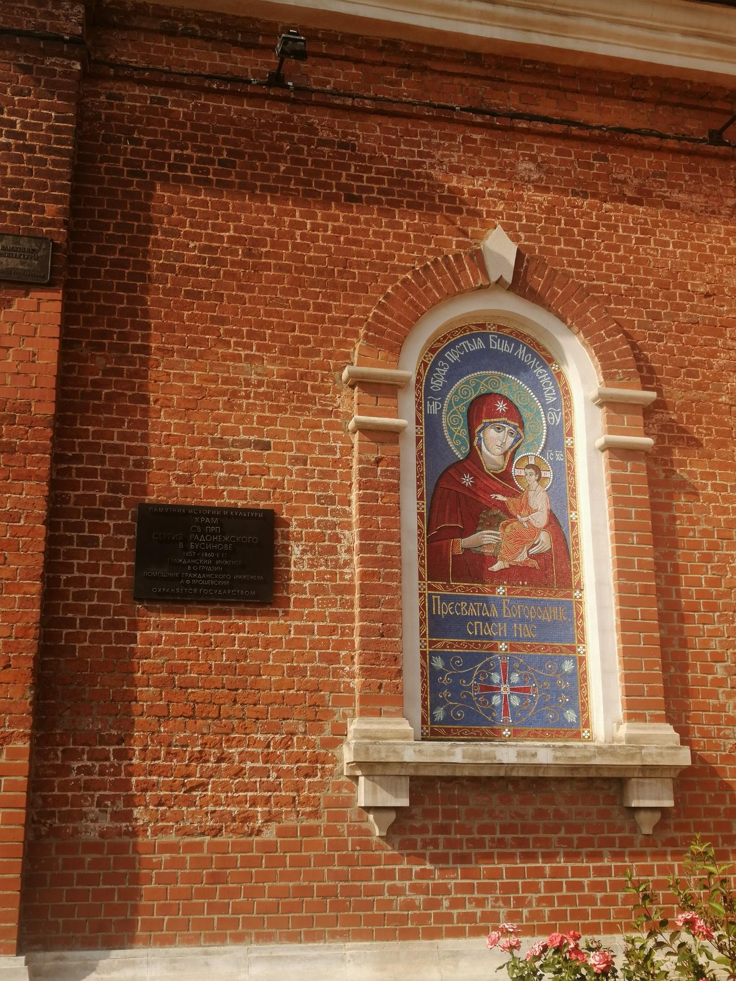 Одна из главных святынь храма – Молченская икона Божьей Матери. Икона была чудесным образом обретена в XIX в. слепой девушкой из земли у речки Бусинки, протекающей возле села Бусиново.