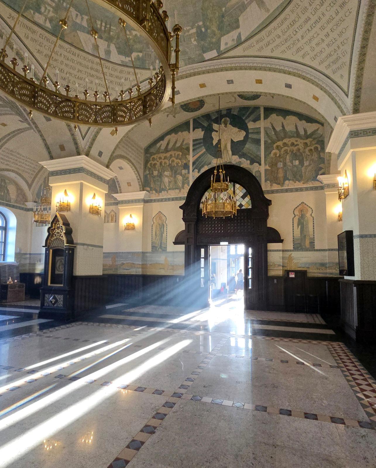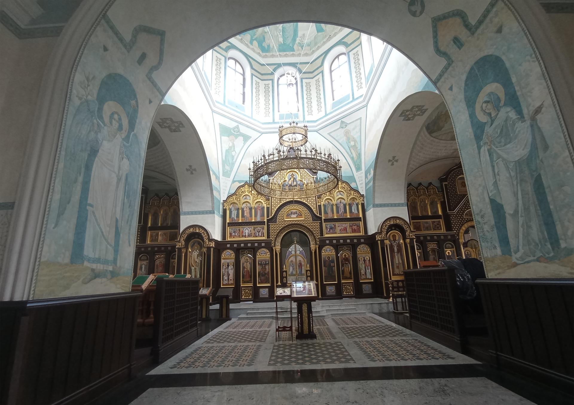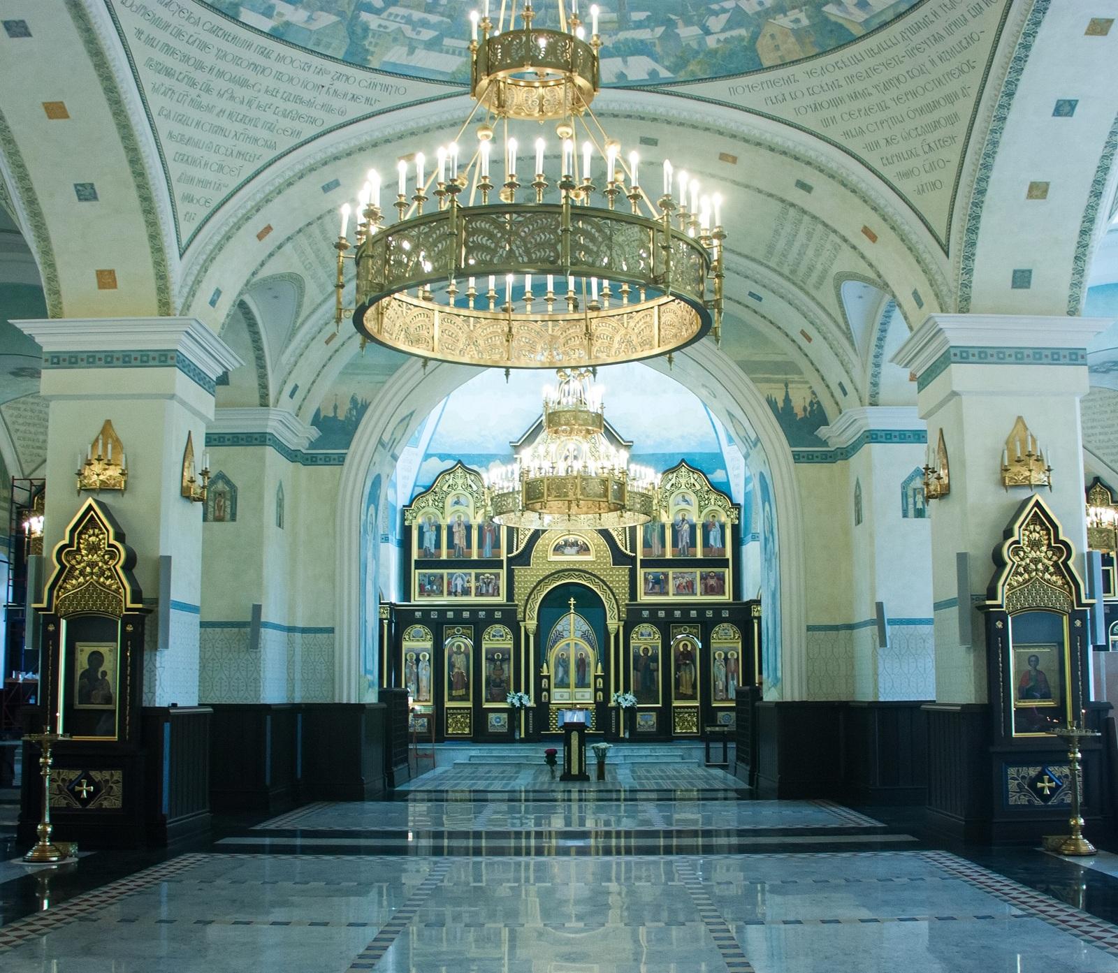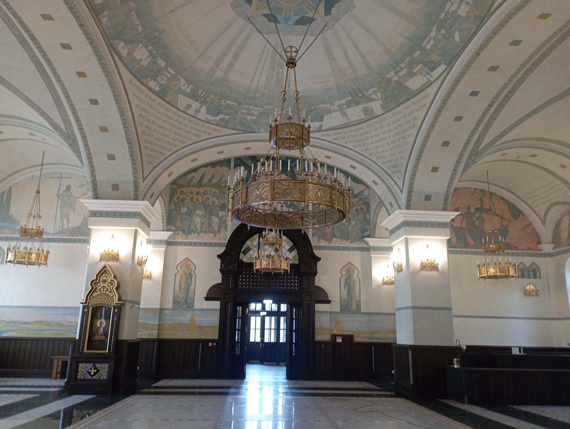 В связи с утратой внутреннего убранства и отсутствием исторических графических материалов интерьер первого этажа был решен по специально разработанному проекту интерьера автора А.А.Скитева. Ограда храма восстановлена на основании архивных фотографий с сохранением масштаба и характера рисунка.