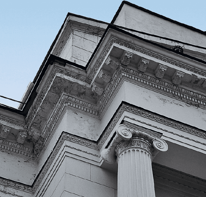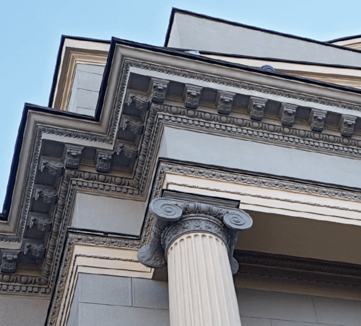 Во время работ провели реставрацию двух участков стены и подпружных арок, ремонт деструктурированной кирпичной кладки, особенно в ризалитах и часовой башне. Реставраторам удалось максимально приблизить к оригинальному тону декоративный штукатурный слой. Фасады здания были окрашены в соответствии с проектными решениями, восстановлены гранитные цоколи, колонны, пилястры, ступени и постаменты.