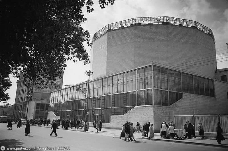 В 1957 году архитекторы В.А. Бутузов, Н.С. Стригалева, М.И. Богданов перестроили его в панорамный кинотеатр со зрительным залом на 1450 мест диаметром около 40 метров был перекрыт конусообразным куполом из металлических ферм. Основной объем в виде многогранника был облицован светлой керамической плиткой и возвышался над выступающим вперед прямоугольным застекленным объемом, где был вестибюль