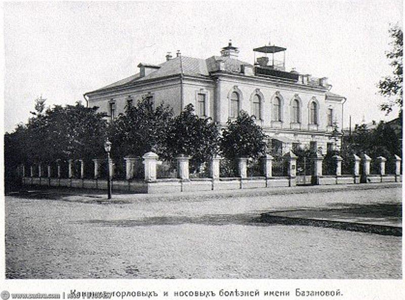 Это была вторая в России ЛОР-клиника, построенная по специальному проекту и оснащенная всеми научными новинками того времени. Она была построена благодаря пожертвованию Юлии Ивановны Базановой, почетной гражданки Москвы и Иркутска.