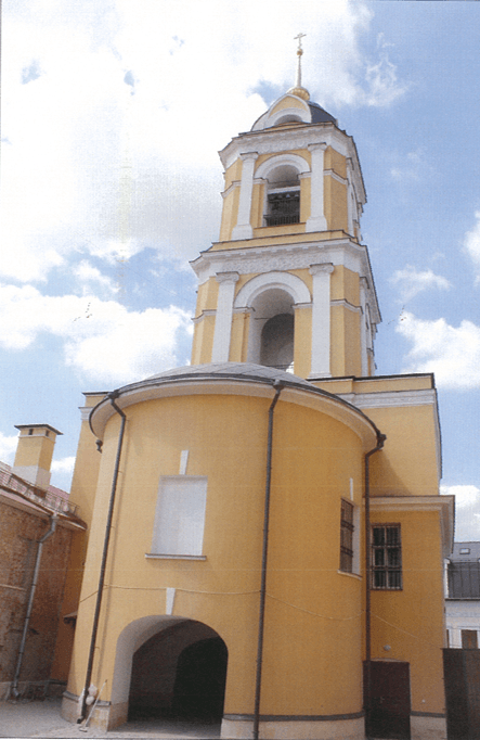 Трёхъярусная колокольня, ставшая важной частью архитектурного ансамбля монастыря, была построена в 1835-1836 годах. Проект в классическом стиле разработал архитектор Козловский. Колокольню возвели на месте центрального входа в монастырь, где в нижнем ее ярусе был главный вход в обитель - Святые Врата.