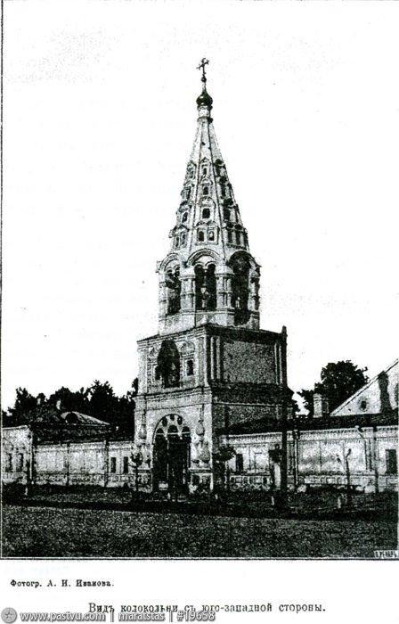 История колокольни Собора Рождества Богородицы в Бутырской слободе берет свое начало в XVII веке, когда на территории слободы была построена новая полковая церковь — каменный храм Рождества Пресвятой Богородицы с приделами Преподобного Сергия и Николая Чудотворца. В 1682–1684 годах по инициативе служащих Бутырского полка и при поддержке царей Петра и Ивана Алексеевичей была возведена трехъярусная шатровая колокольня с проездными воротами. Особенностью колокольни стал её шатровый верх, украшенный четырьмя ярусами окон-слухов, а также изразцовый фриз, выполненный в духе позднего узорочья.