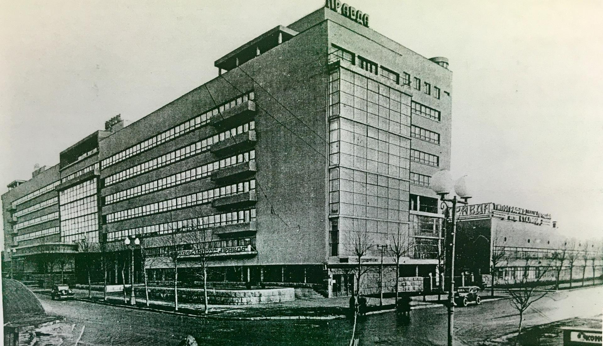 В 1930 г. издательство «Правда» провело закрытый конкурс на строительство. В нем участвовали проекты архитекторов А. В. Щусева, П. А. Голосова, С. П. Леонтовича, Э. М. Лисицкого.
