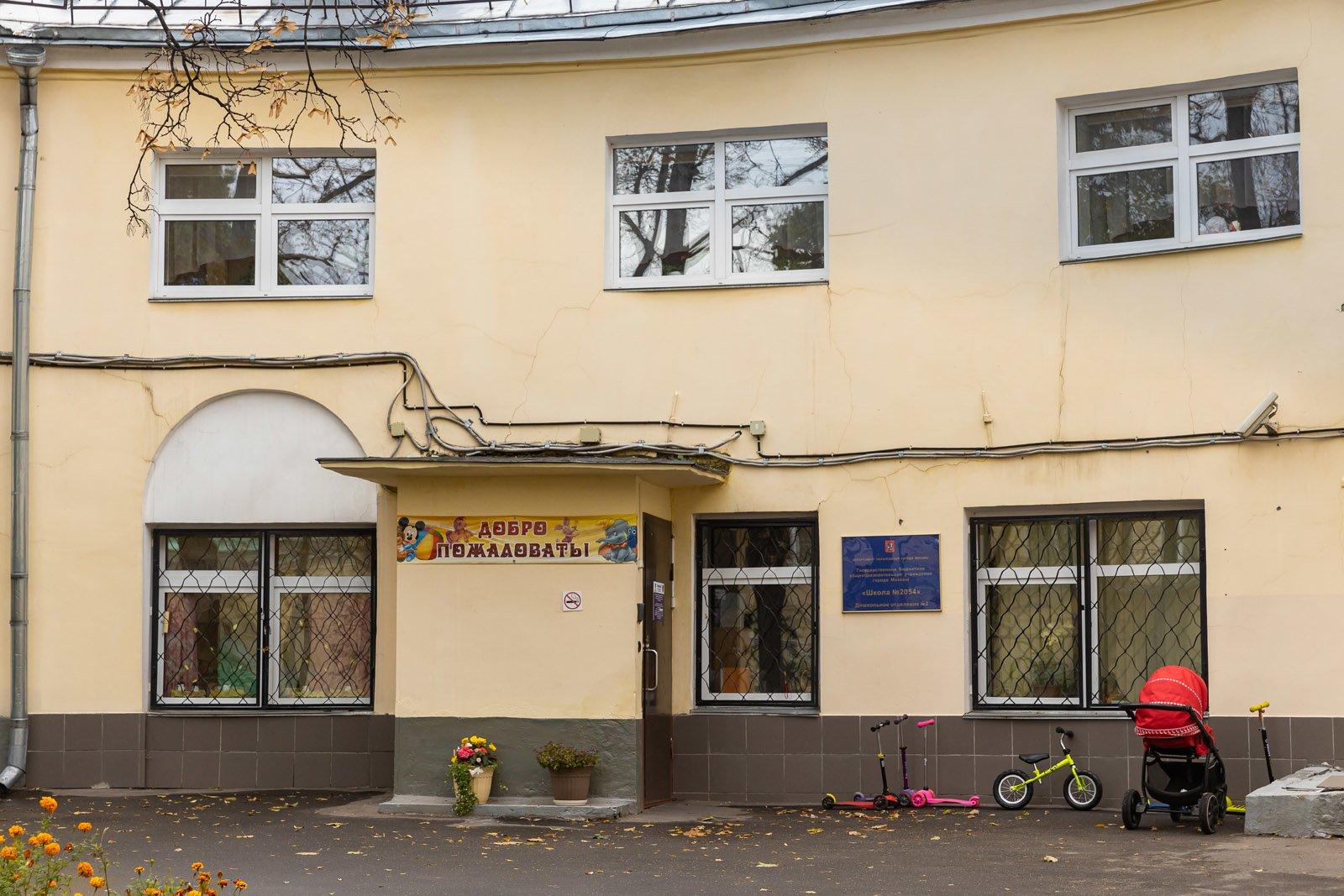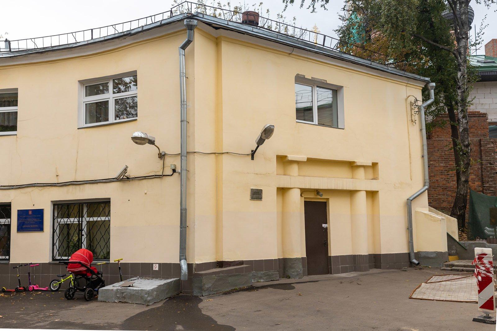 Полукруглое криволинейное строение 5 во дворе усадьбы изначально было конюшней. Это здание было построено еще при Татищевых. Необычные, с изгибами, корпуса служб должны были скрыть неправильную форму участка и сделать двор замкнутым и уютным. Это вполне удалось. И по сей день во флигелях позади главного дома усадьбы (строение 4 и 5) располагается детский сад. Вместе с изогнутым «в плане» строением 4 бывшая конюшня образует пространство наподобие манежа.